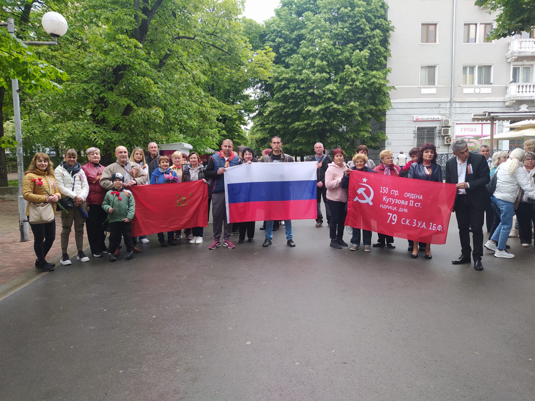 В Пловдив след шествието „Безсмъртен полк“ се състоя тържествен митинг-концерт на паметника на съветския воин освободител „Альоша“. Участие в програмата взе група „Грамофон“, която посрещна посланика на РФ Елеонора Митрофанова с песента „Священная война“.