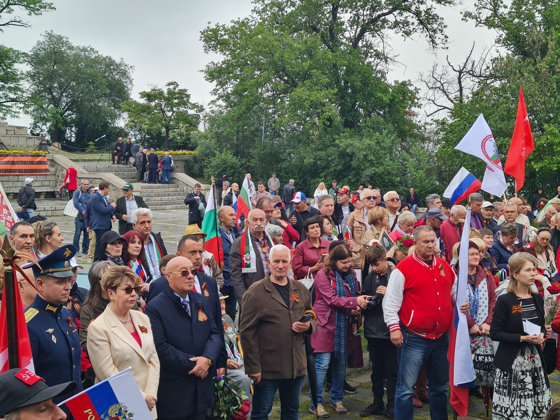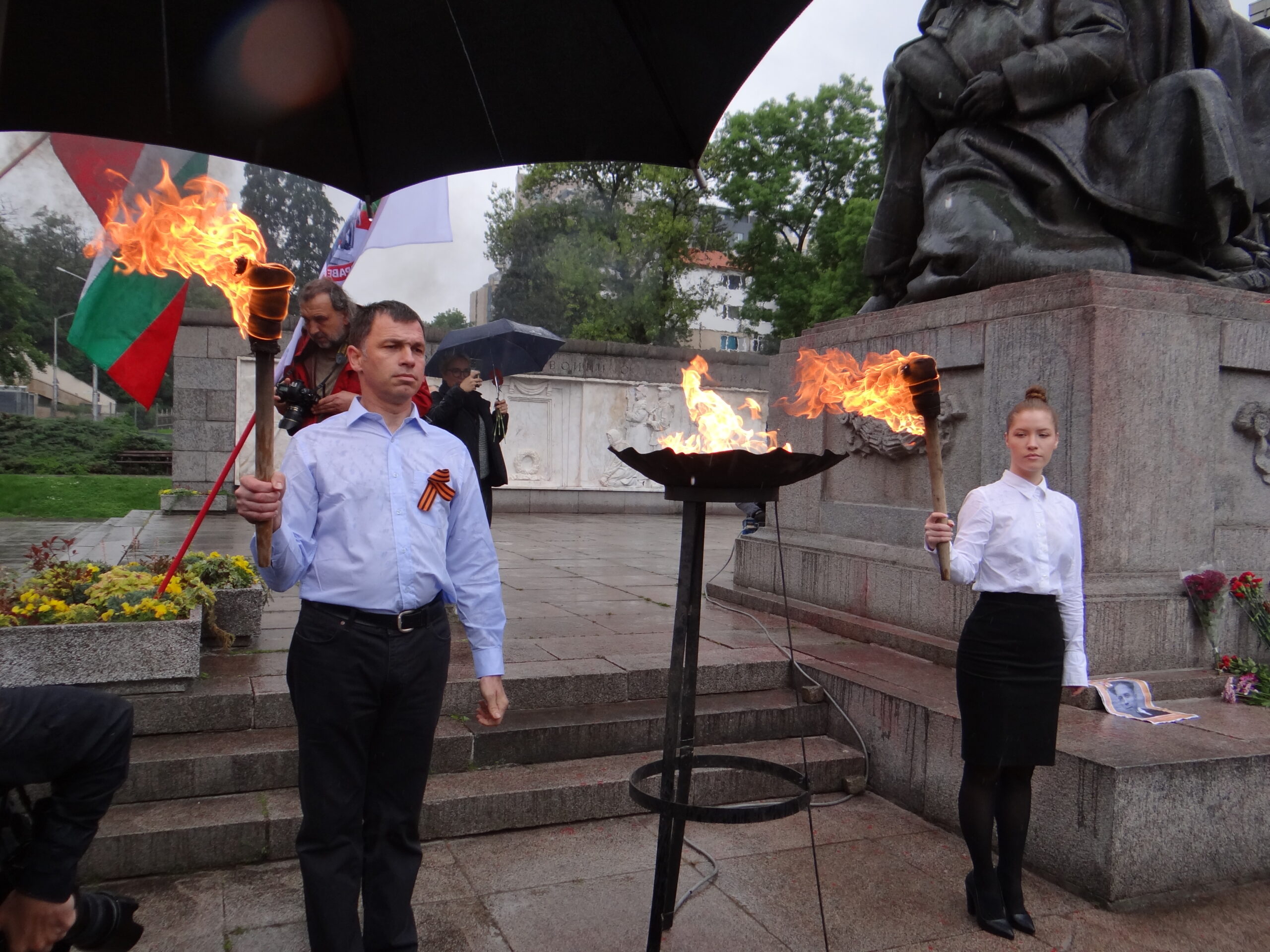 Официалната част с участието на посланика на РФ Елеонора Митрофанова се проведе пред паметника-костница в кв. „Лозенец“, където стотици хора се бяха събрали под проливния дъжд.