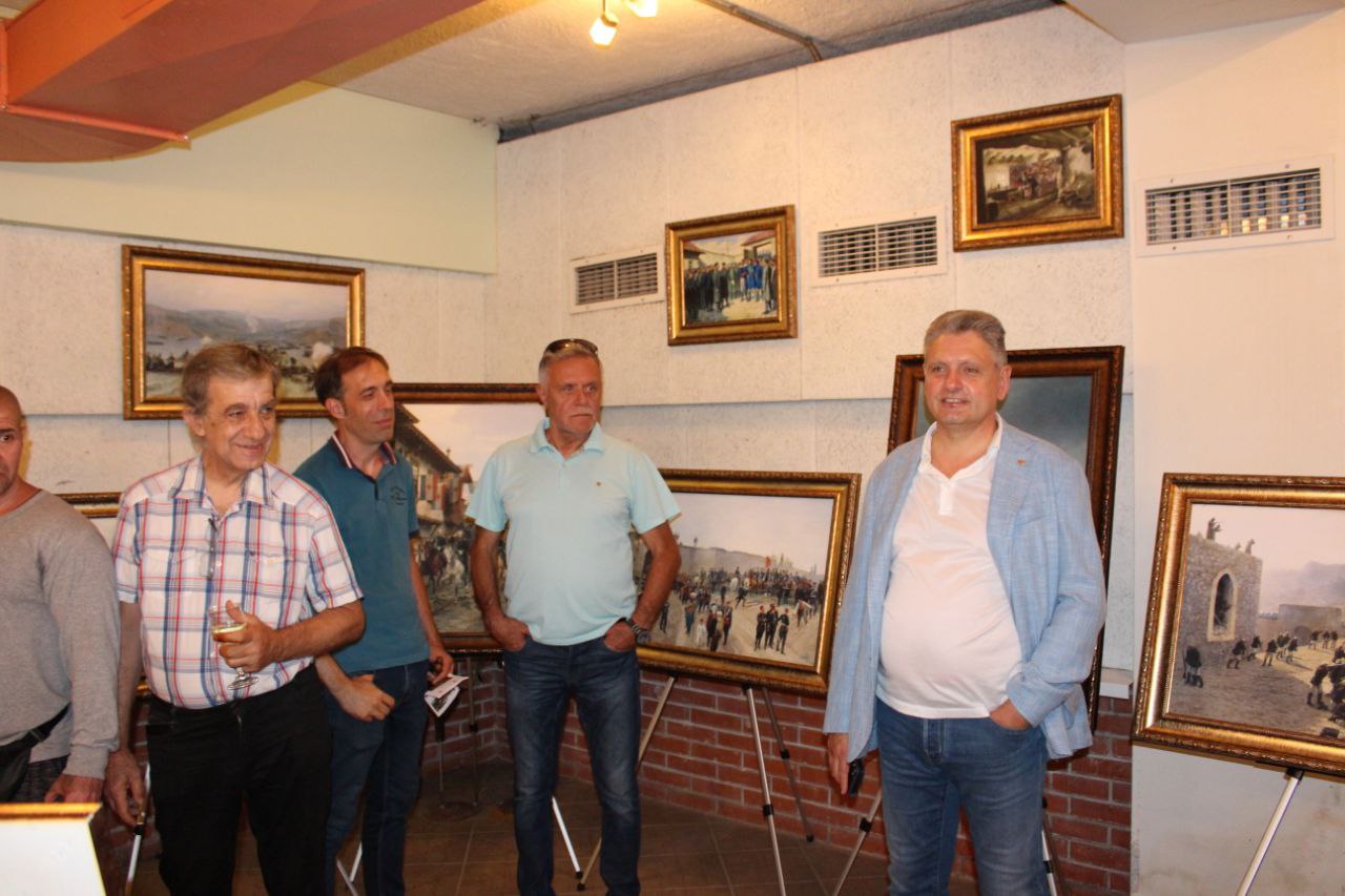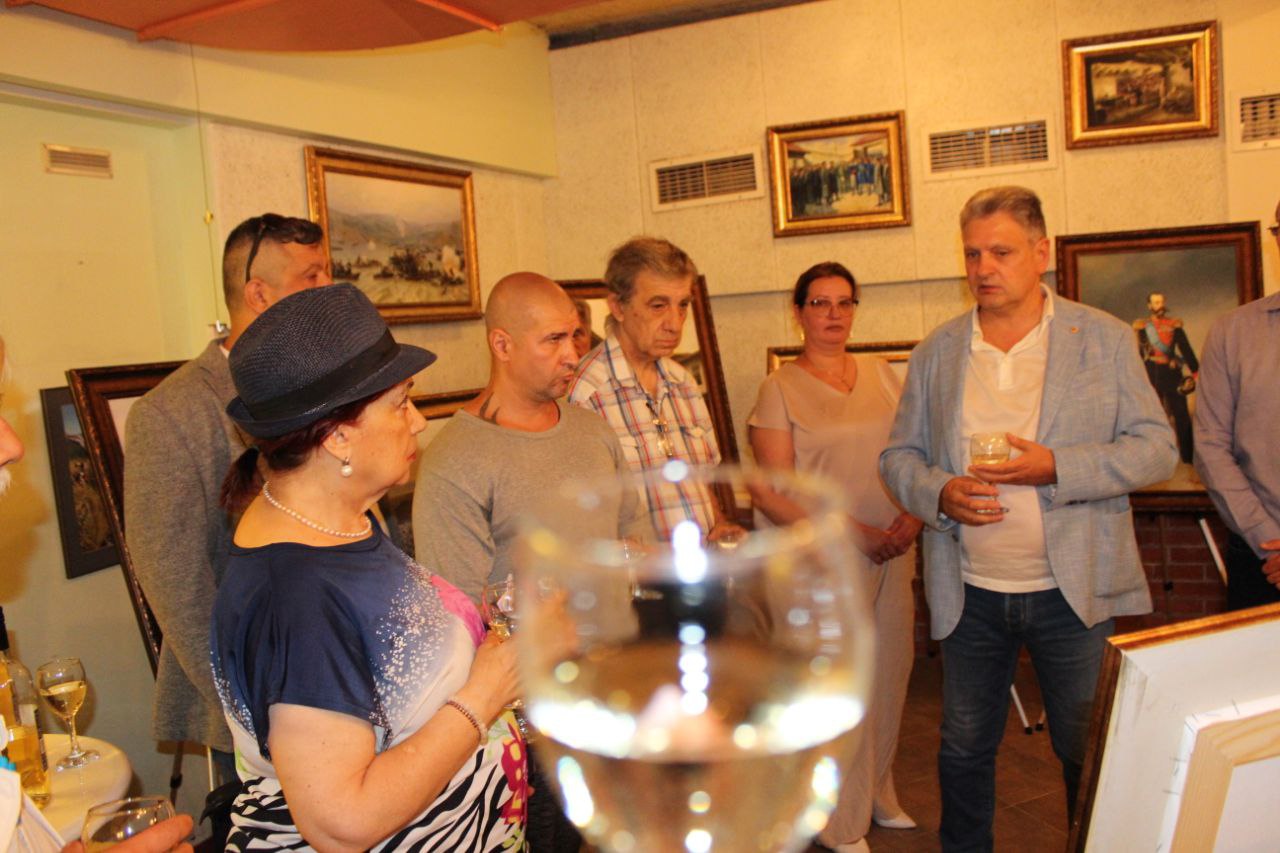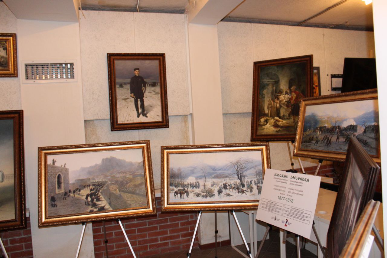 Здесь представлены 18 репродукций картин, которые выполнены по особой швейцарской технологии и неотличимы от оригинала. Выставку открыл Николай Малинов – Генеральный секретарь МДР, почетный председатель НДР. В своем выступлении он заявил, что эта выставка является асимметричным ответом на репрессии государства в отношении русофилов. „Нынешняя выставка из 18 картин, воссоздающих моменты войны, – это наш скромный поклон благодарности и молитвы за будущее единение двух народов. Болгарский и русский народы едины перед историей и перед Богом через свою культуру и язык, через свою веру и мировоззрение“, – категорично заявил Малинов. Он напомнил, что это была война с наибольшим числом добровольцев из всех войн в истории XIX века.