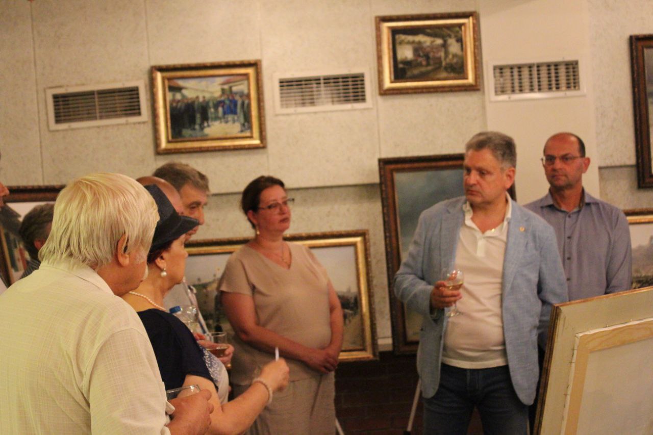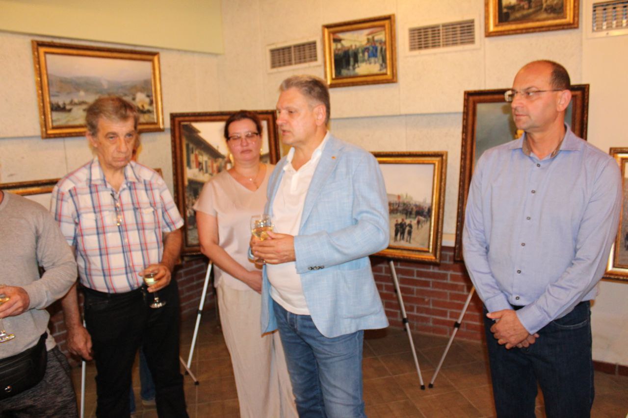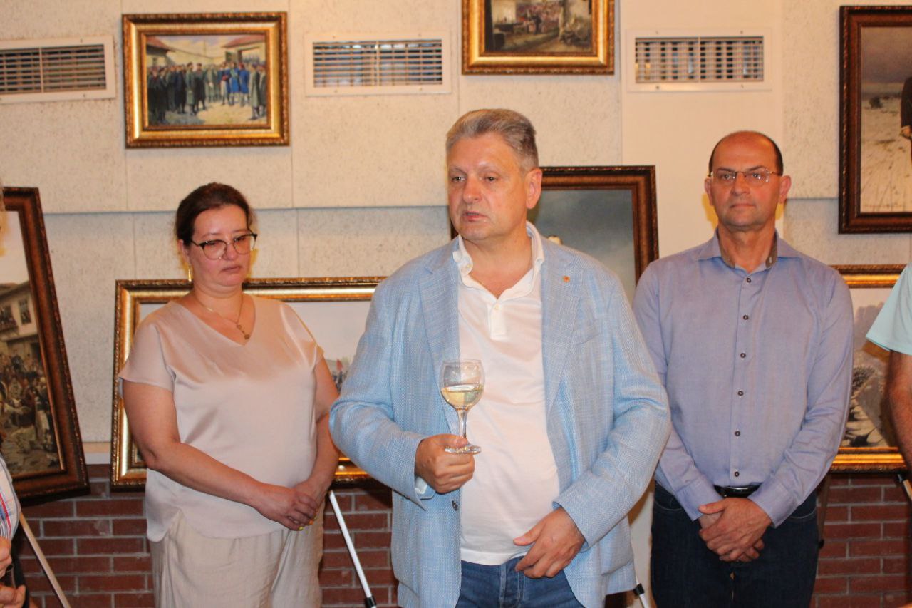 Здесь представлены 18 репродукций картин, которые выполнены по особой швейцарской технологии и неотличимы от оригинала. Выставку открыл Николай Малинов – Генеральный секретарь МДР, почетный председатель НДР. В своем выступлении он заявил, что эта выставка является асимметричным ответом на репрессии государства в отношении русофилов. „Нынешняя выставка из 18 картин, воссоздающих моменты войны, – это наш скромный поклон благодарности и молитвы за будущее единение двух народов. Болгарский и русский народы едины перед историей и перед Богом через свою культуру и язык, через свою веру и мировоззрение“, – категорично заявил Малинов. Он напомнил, что это была война с наибольшим числом добровольцев из всех войн в истории XIX века.