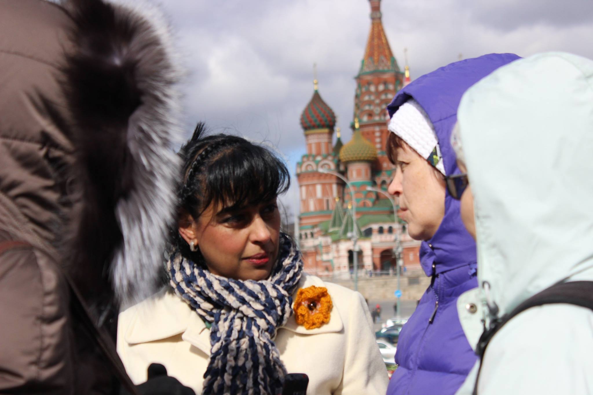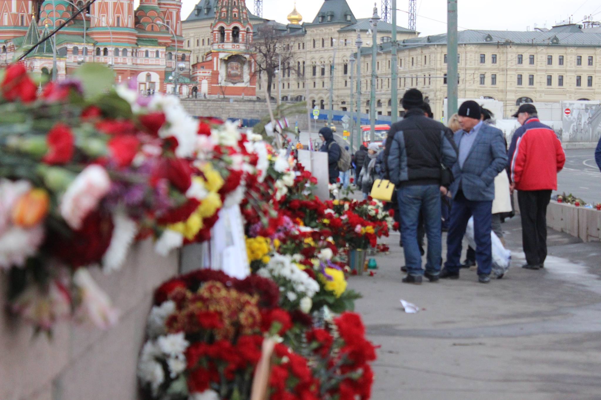 Само преди дни тук беше пълно с цветя. Плакатите, писани на ръка и защипани до снимката на Немцов, също си стояха. През нощта на 28 март обаче импровизираният мемориал бе разчистен. Около два часа след полунощ десетина облечени в черно мъже събраха всички цветя, снимки и свещи в огромни чували, стана ясно от видеозапис в сайта „Вконтакт“. В последвалите бурни дискусии в нета съмненията паднаха върху кметството в Москва. Интернет изданието „Йод“ дори посочи конкретно заместник-кмета Петр Бирюков. От градската управа обясниха, че техните служители чистят само увехналите цветя от лобното място, което е само на 500 метра от Кремъл. За едноседмичния си престой в Москва обаче аз не видях такива. Нощем изсъхналите цветя се подменяха със свежи, а свещите се препалваха.