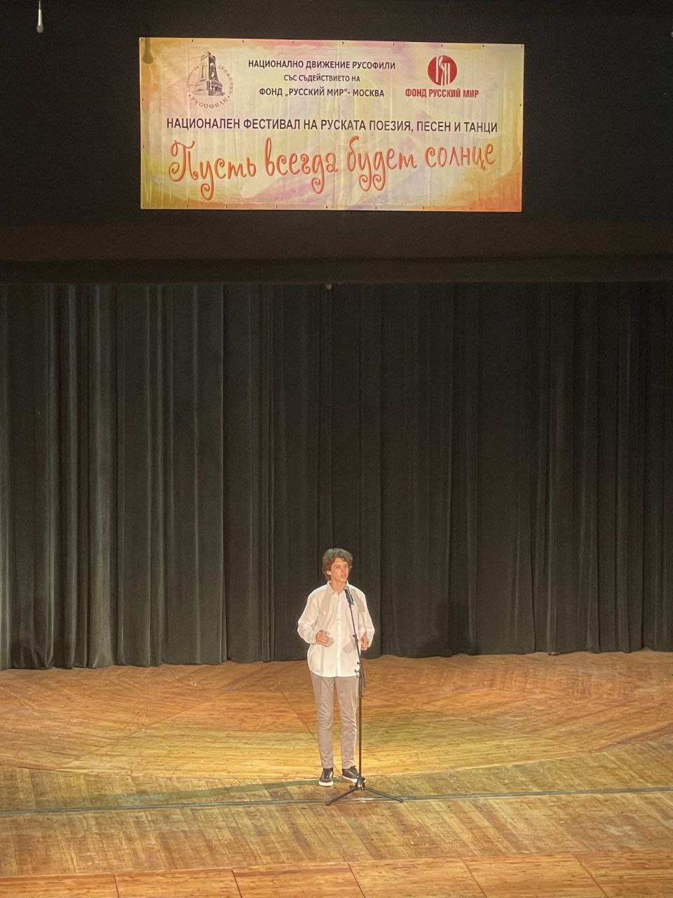 В Доме культуры «Искра» в городе Казанлыке состоялся заключительный этап Х Национального и II Международного фестиваля русской поэзии, песни и пляски «Пусть всегда будет солнце», на котором приняли участие более 200 юных дарований со всей страны и из за рубежа.