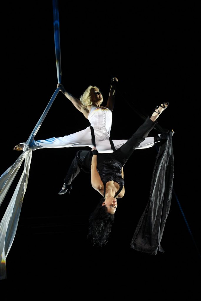 Зрителите ще бъдат омагьосани от главозамайващите номера включващи въздушни платна, , опасни акробатични каскади, групов еквилибър, жива въздушна рамка, “колелото на смъртта” и много други впечатляващи номера.