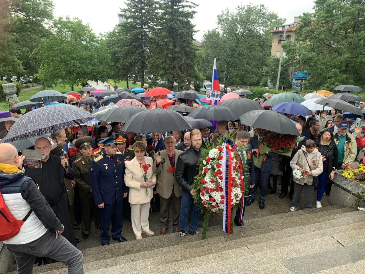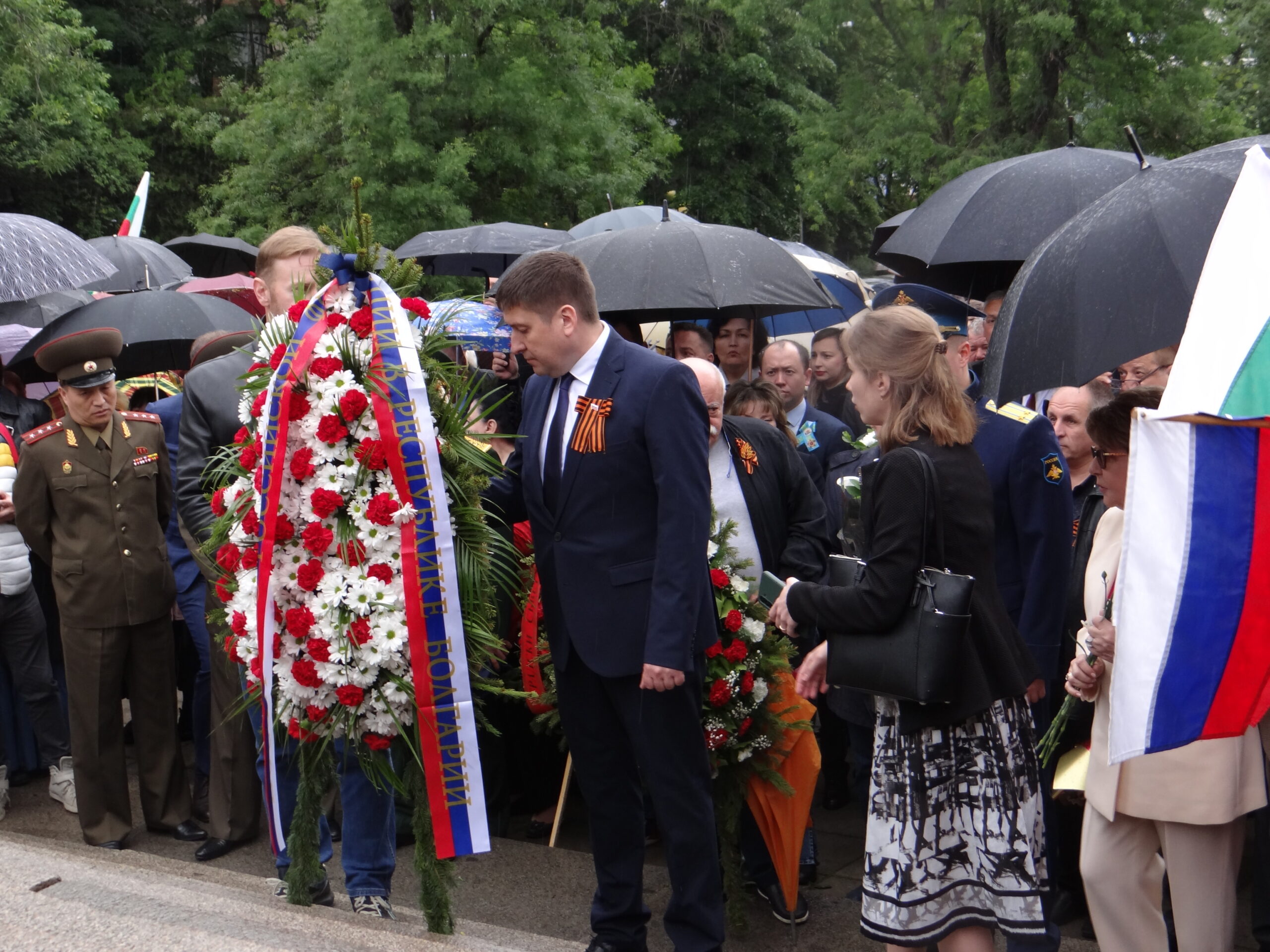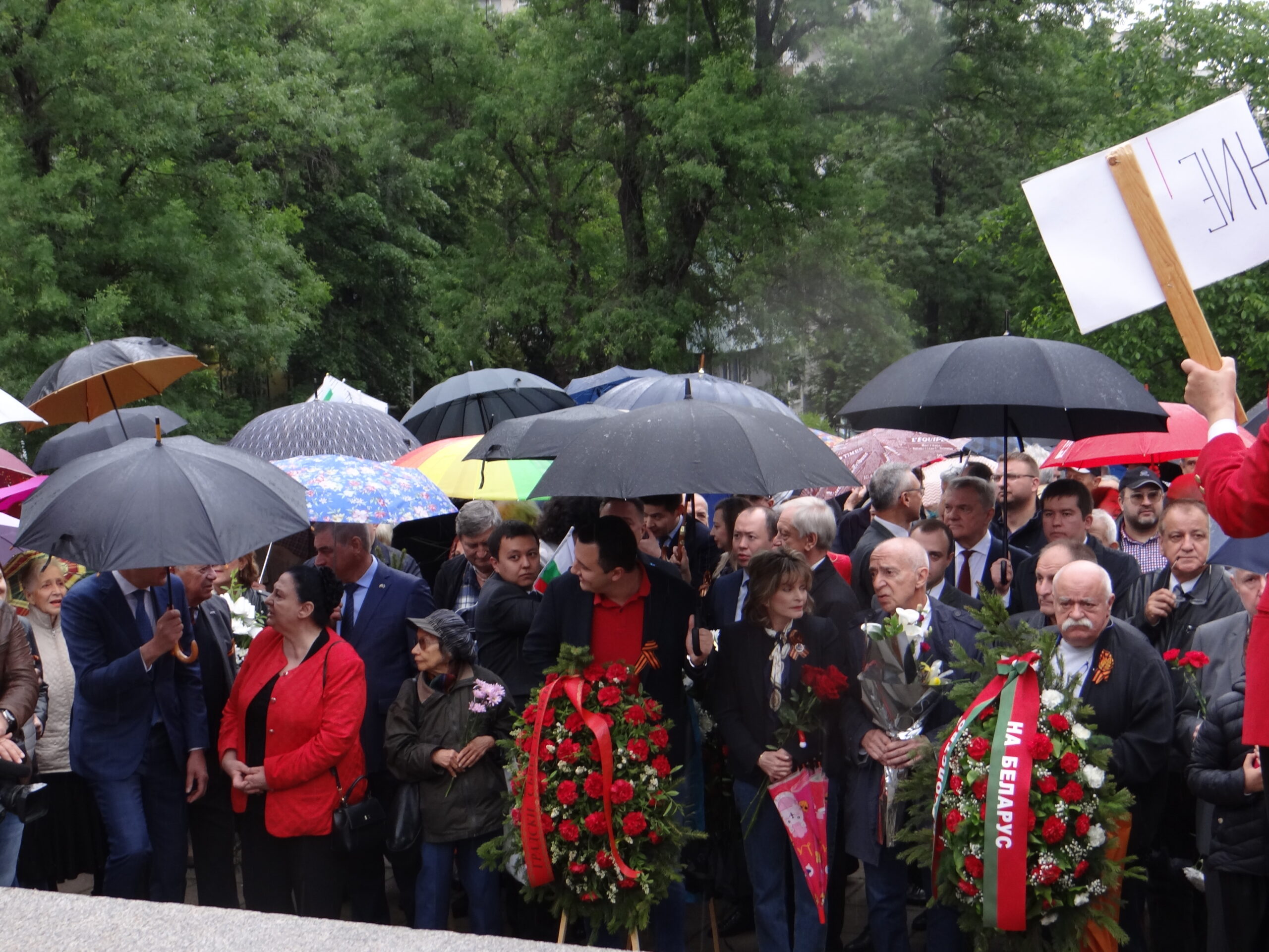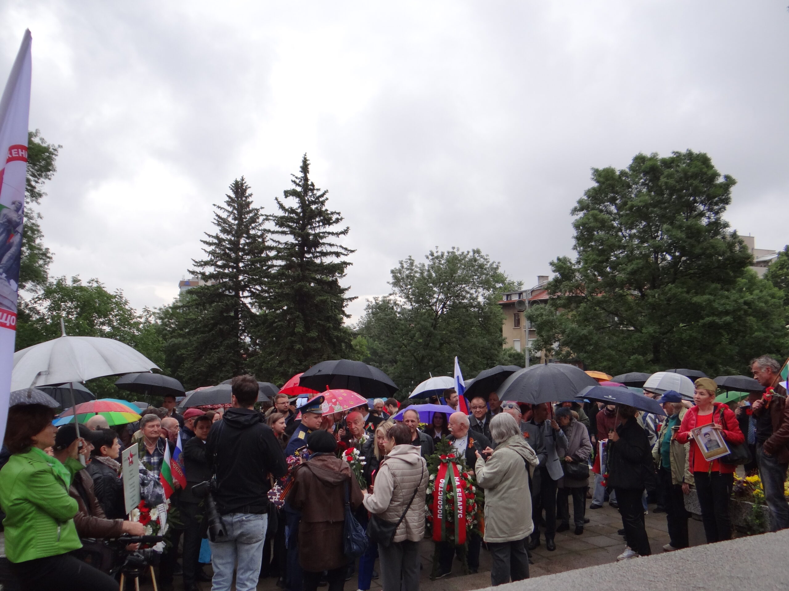 Официалната част с участието на посланика на РФ Елеонора Митрофанова се проведе пред паметника-костница в кв. „Лозенец“, където стотици хора се бяха събрали под проливния дъжд.