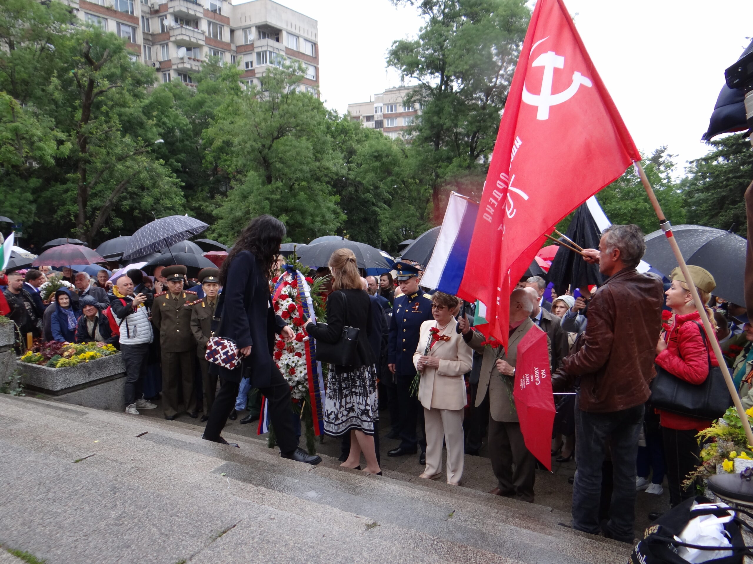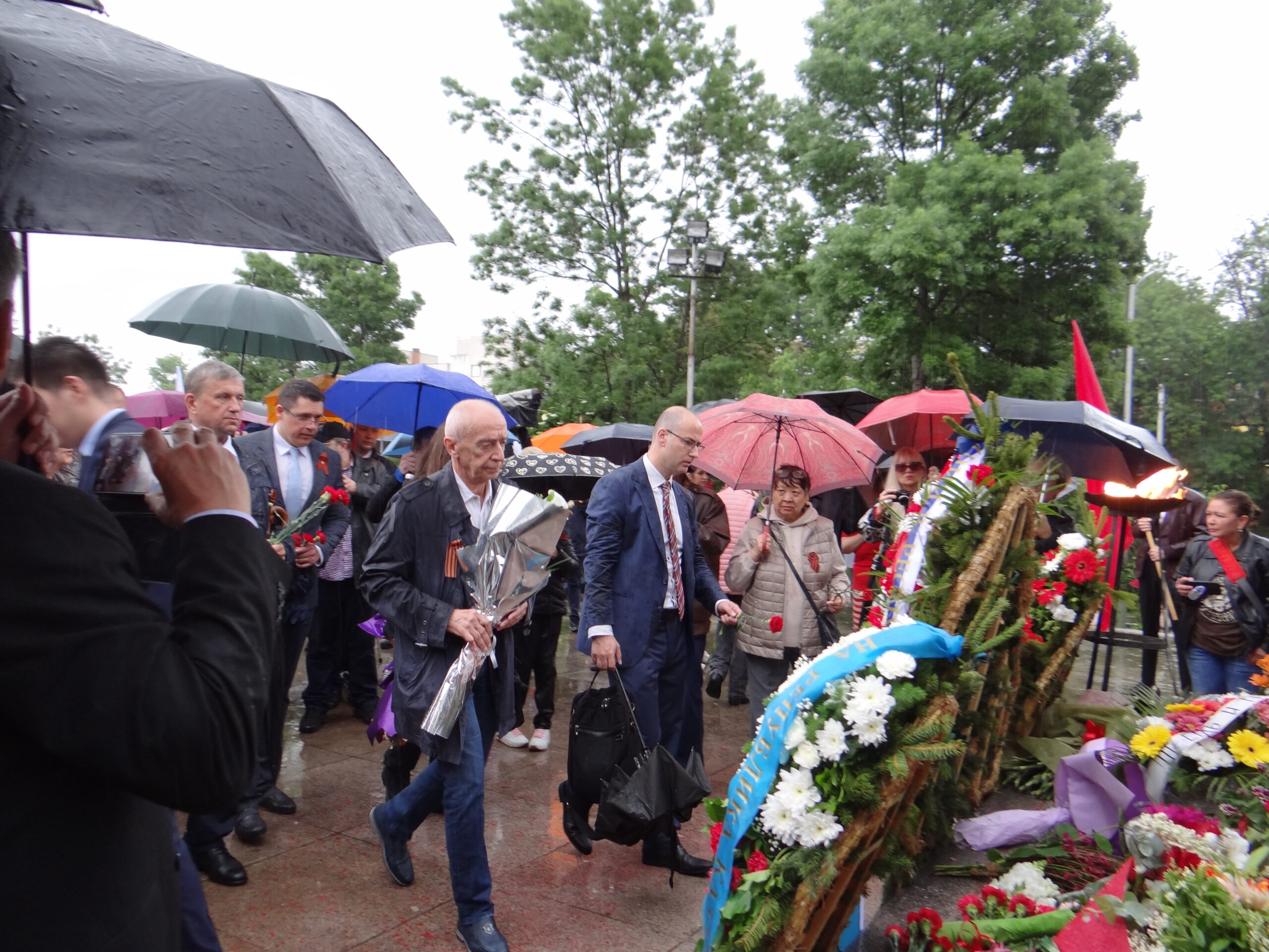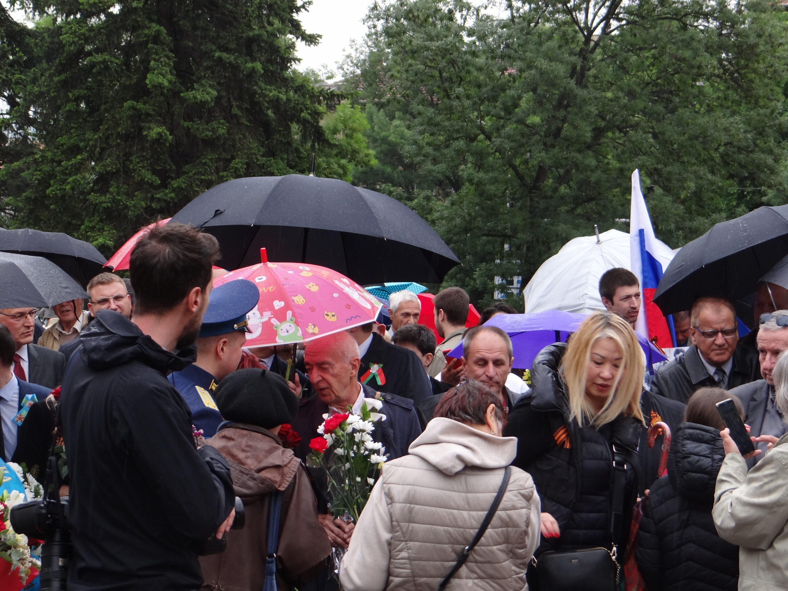 Официалната част с участието на посланика на РФ Елеонора Митрофанова се проведе пред паметника-костница в кв. „Лозенец“, където стотици хора се бяха събрали под проливния дъжд.