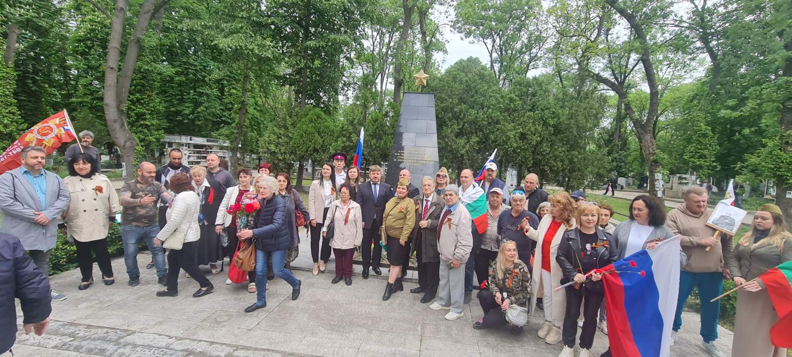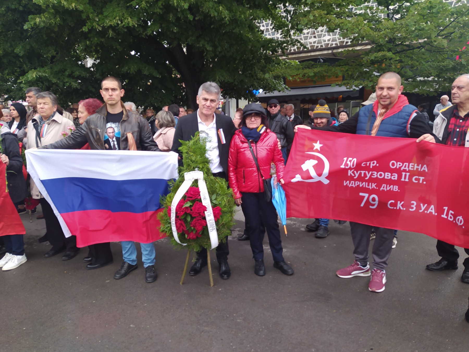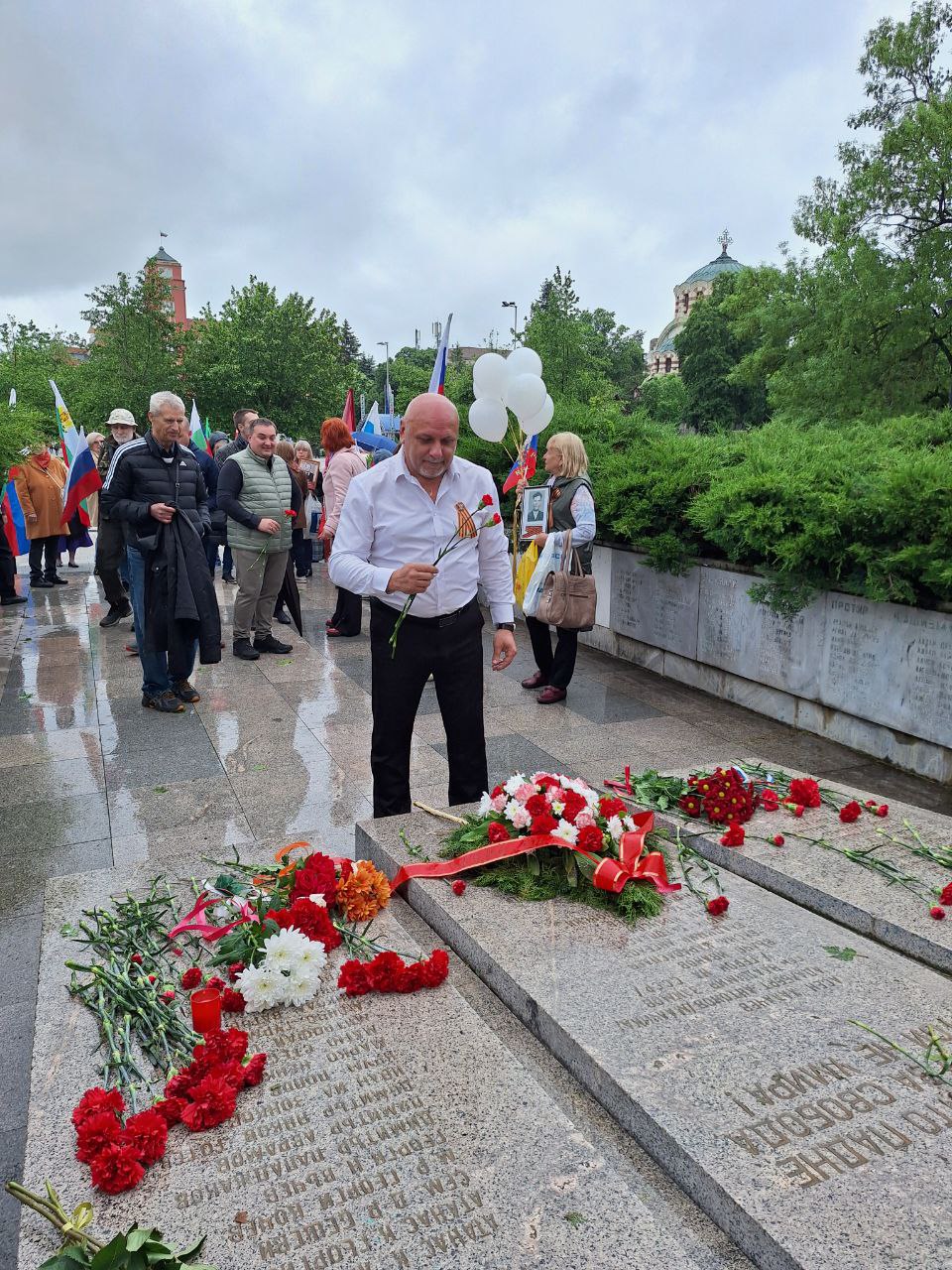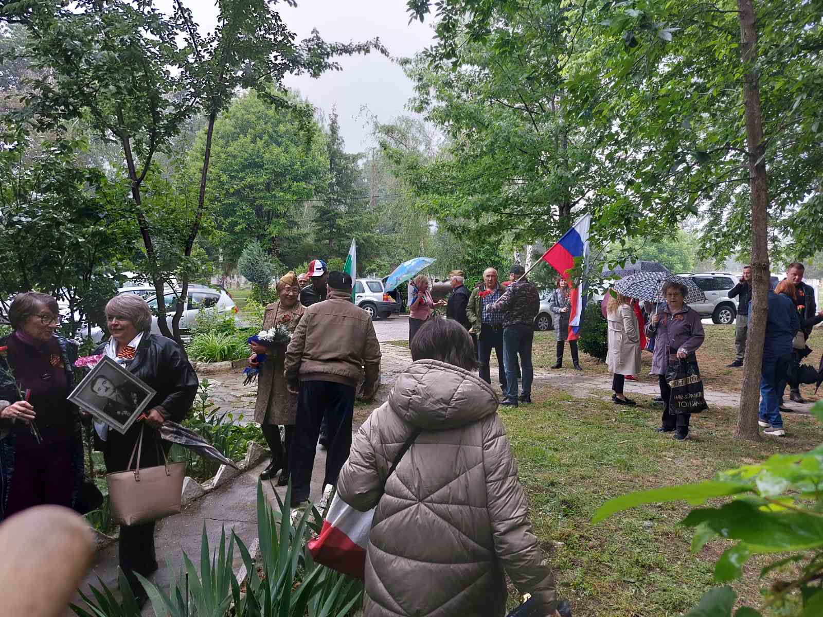 Официалната част с участието на посланика на РФ Елеонора Митрофанова се проведе пред паметника-костница в кв. „Лозенец“, където стотици хора се бяха събрали под проливния дъжд.