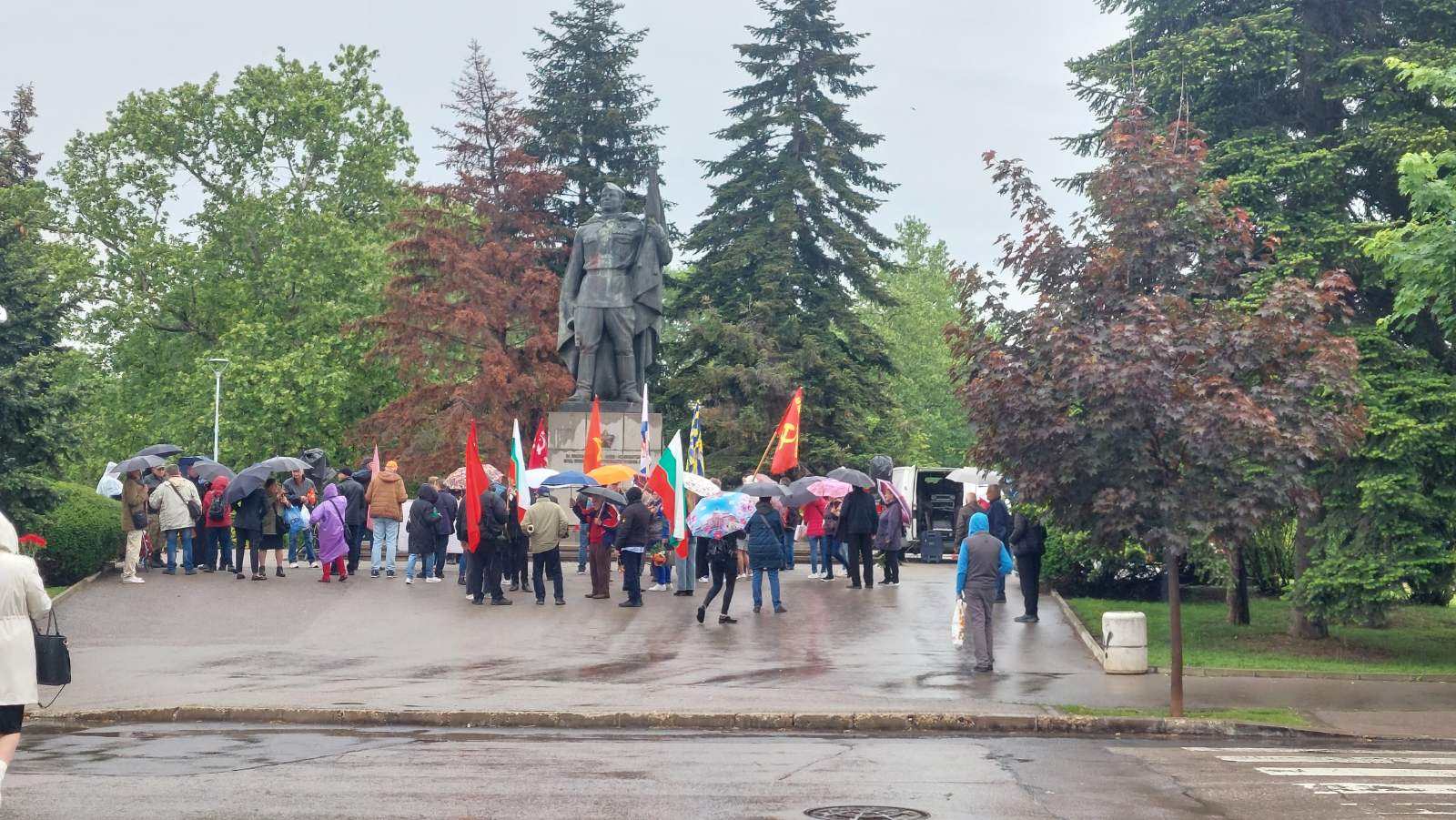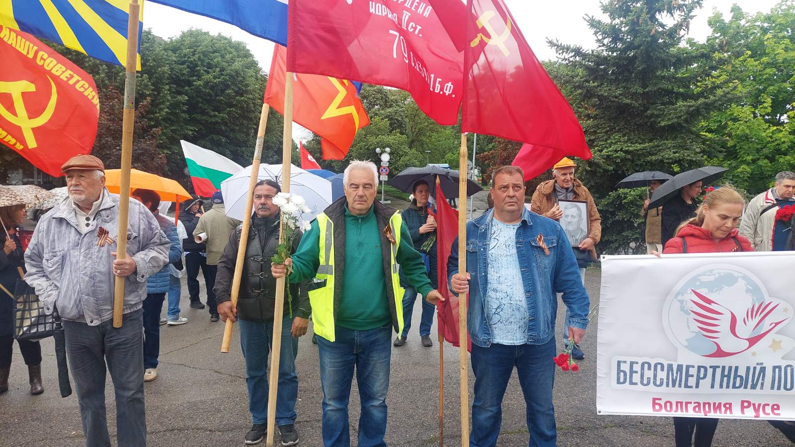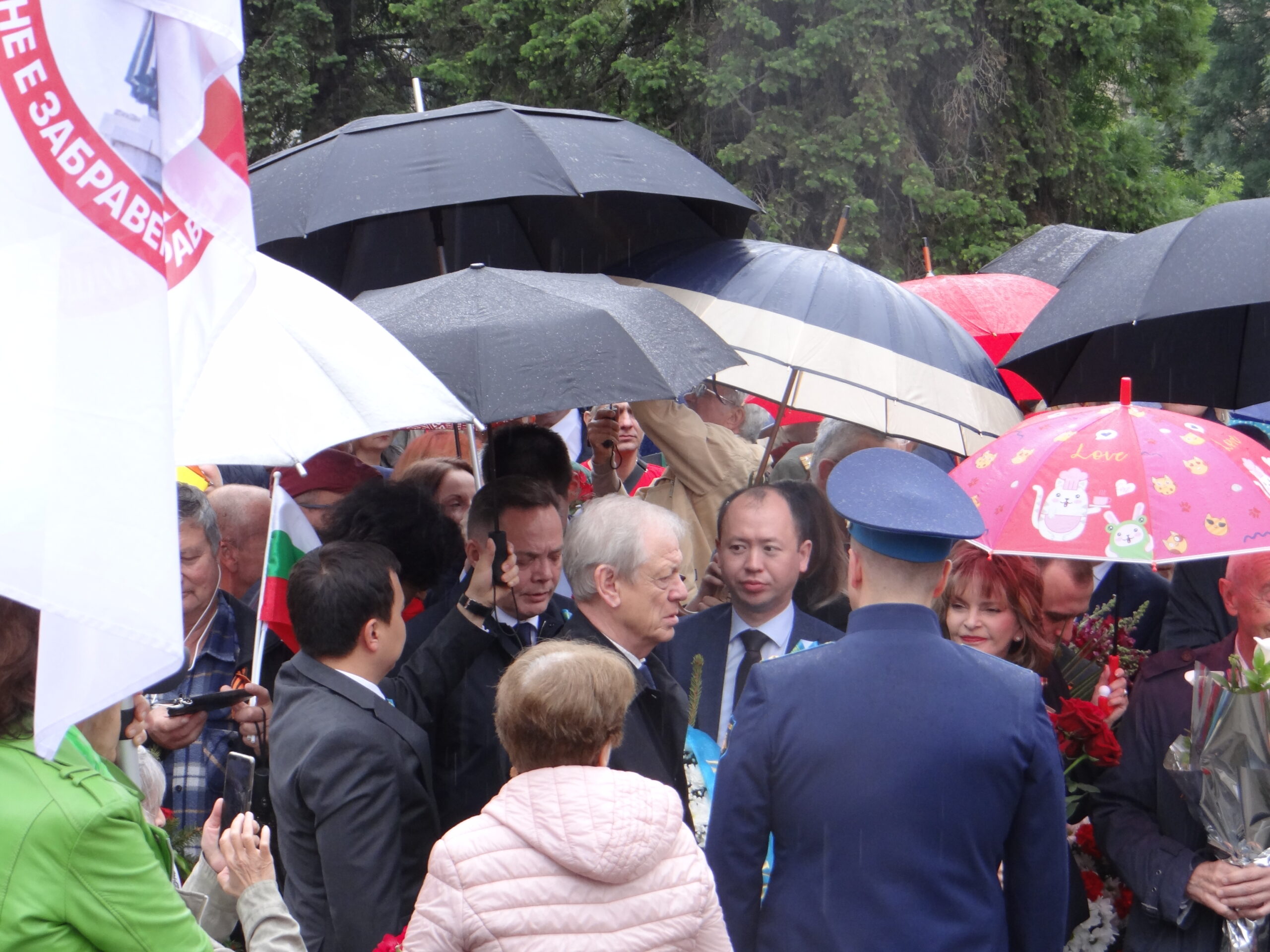 Въпреки опита на Столична община да забрани шествието „Безсмъртен полк“ в София, стотици жители на столицата се събраха под дъжда пред паметника на Незнайния войн. Да напомним, че основанието на общината беше някакво секретно становище на ДАНС. Там се състоя официалната част с участието на президента ген. Румен Радев и гвардейската рота.
