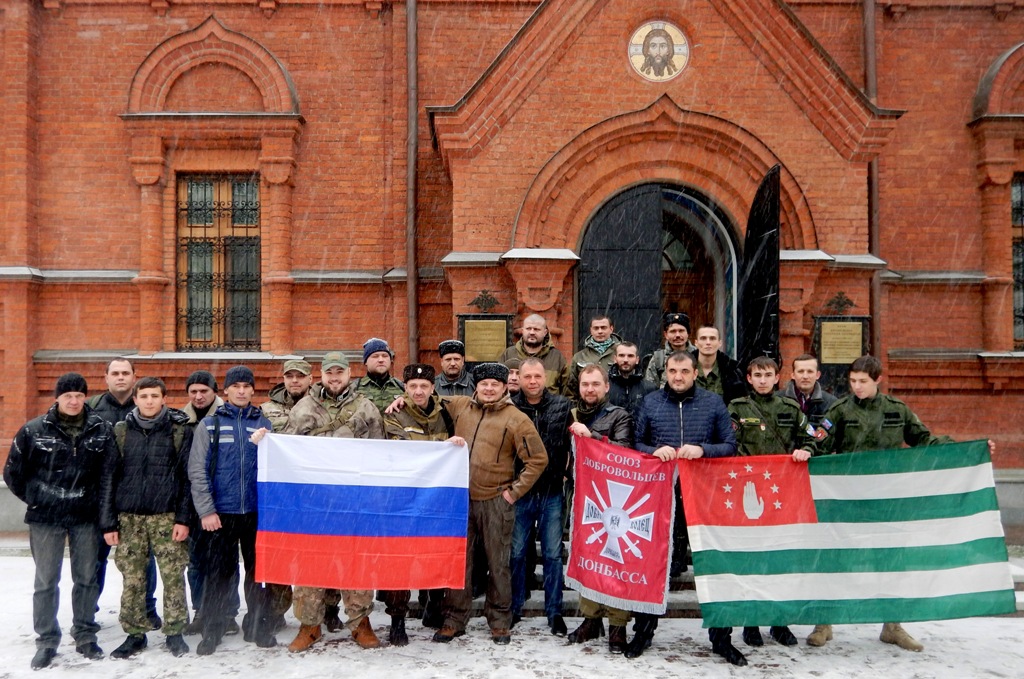 В събота, на 12 декември, в храма „Благовещение на Пресвета Богородица“ в Соколники, известен също така като храм на Въздушно-десантните войски на РФ, бяха осветени знамената на Съюза на Доброволците в Донбас.