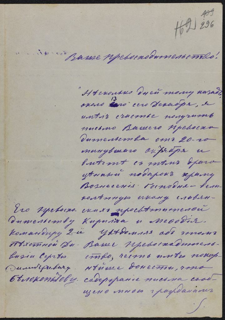 Кореспонденциата на генерал Белокопитов с Митрополит Симеон.