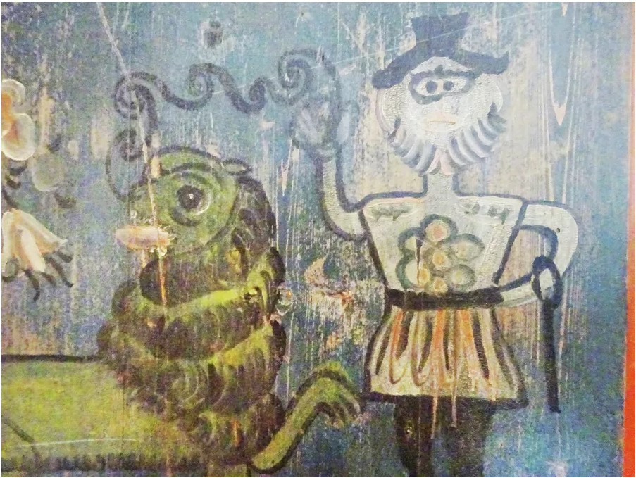 Къщата е покрита с „картини на домашни духове“ – традиционни за руския Север рисунки на местните художници Петровски. На фронтона и балкона са изобразени лъвове и еднорози с човешки лица.