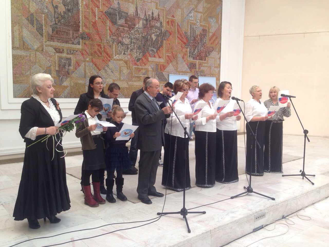 Музыкальный ансамбль „Душа поет” „Русского клуба” в начале встречи исполнил песню из к/ф „Офицеры”, а затем песни „Вставай, страна огромная”, „Прощание славянки”, „Марш защитников Москвы”.