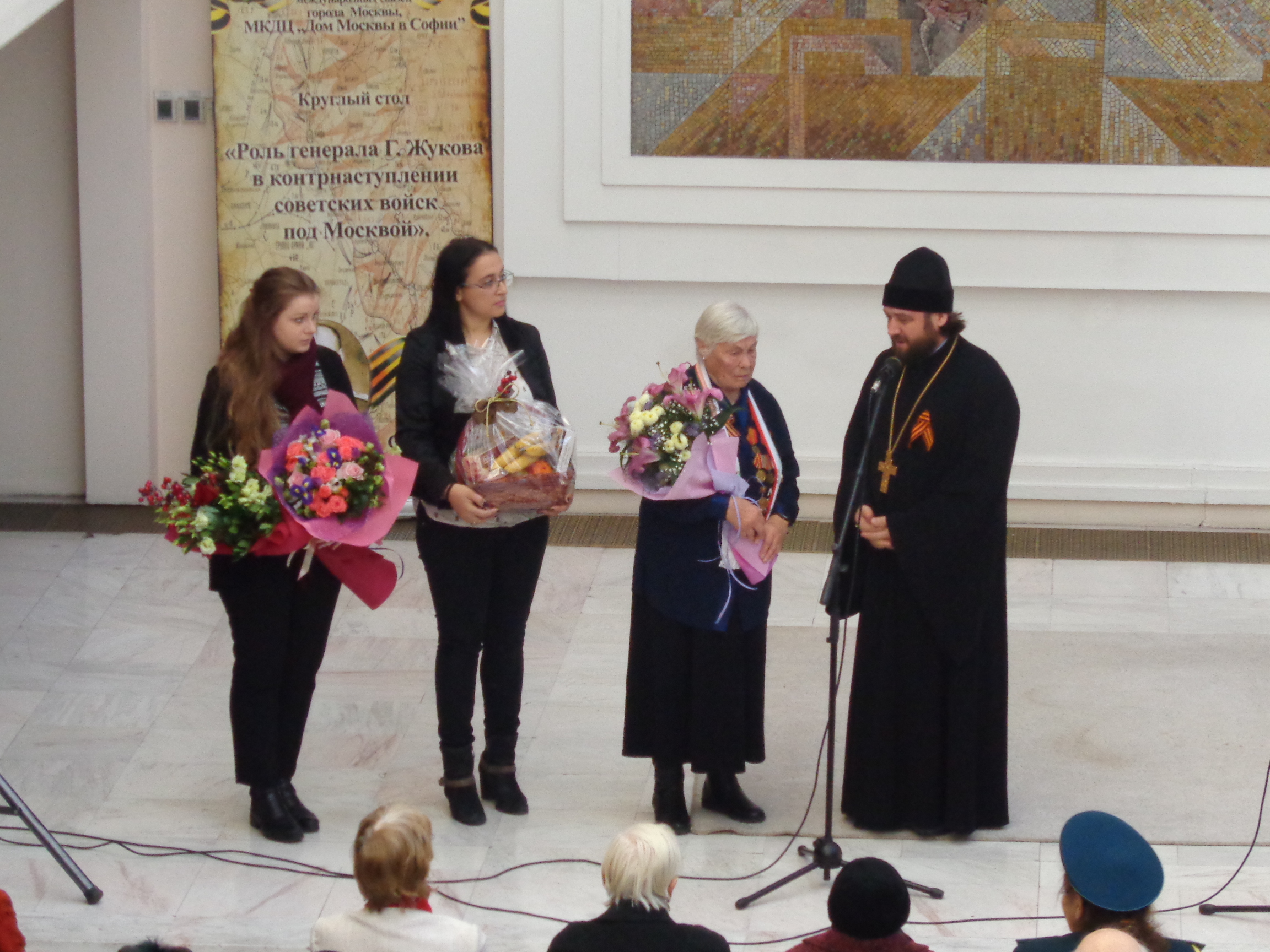 В зале присутствовали также ветераны ВОВ – члены „Русского клуба” Алла Николаевна Илиева и Алина Михайловна Тошева. Председатель Софийской городской организации Союза ветеранов войн Болгарии Любен Ризов вручил им и Л.Н.Осиповой цветы и сувенирныe шарфы.