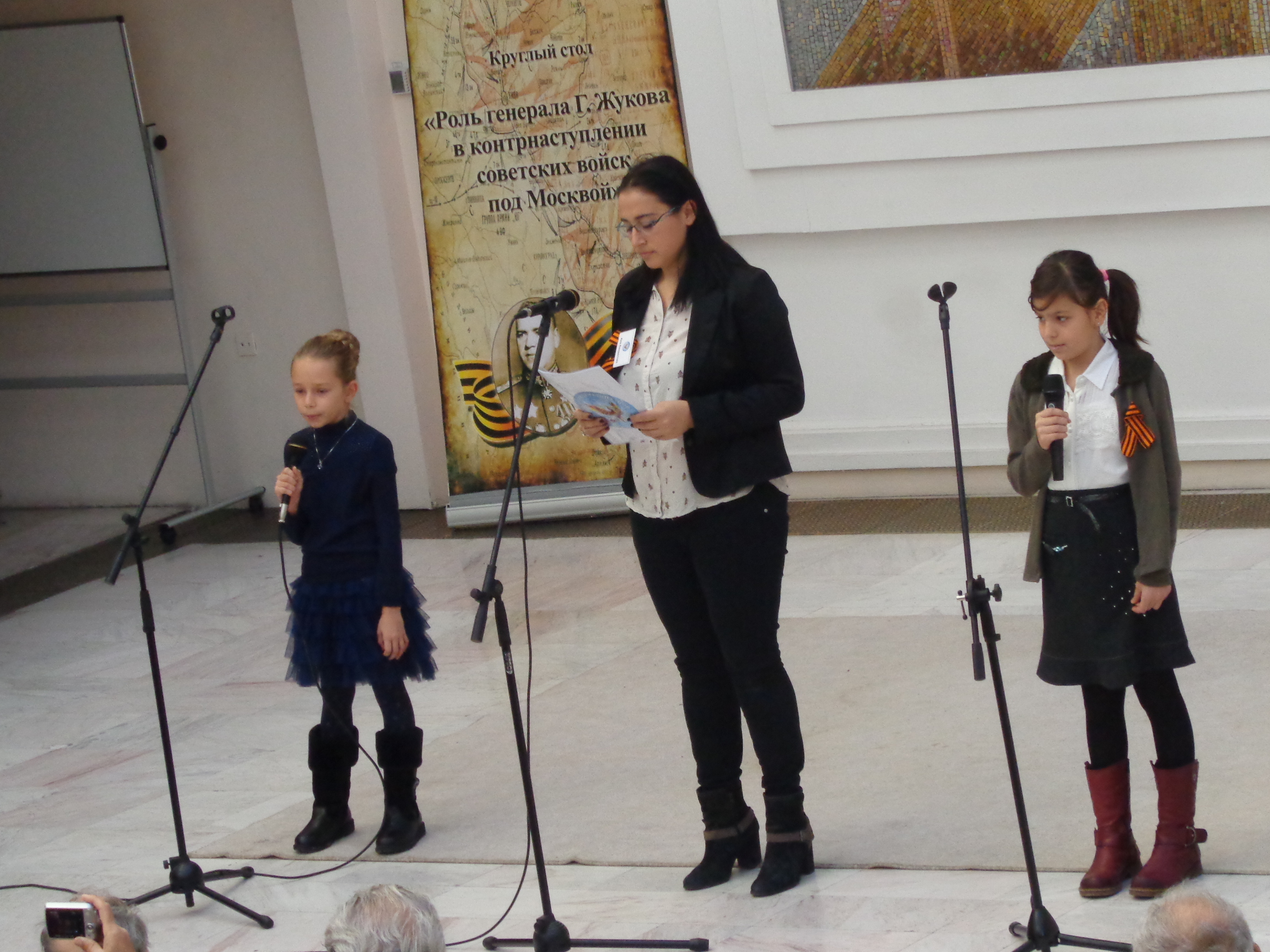 Александр Александров рассказал о жизни великого полководца Маршала Г.К. Жукова, о великих сражених, в которых он участвовал – битве на р.Халхин-Гол, организации обороны Ленинграда, сражениях под Москвой, взятии Берлина. От имени и по поручению советского Верховного главнокомандования Жуков 8 мая 1945 года в Карлсхорсте (близ Берлина) принял капитуляцию вооруженных сил Германии, а 24 июня 1945 г. принимал Парад Победы в Москве. Он четырежды Герой Советского Союза, дважды обладатель ордена «Победа», награжден 6-тью орденами Ленина, 3-мя орденами Красного Знамени, орденом Суворова, а также наградами других государств, воевавших с Германией.