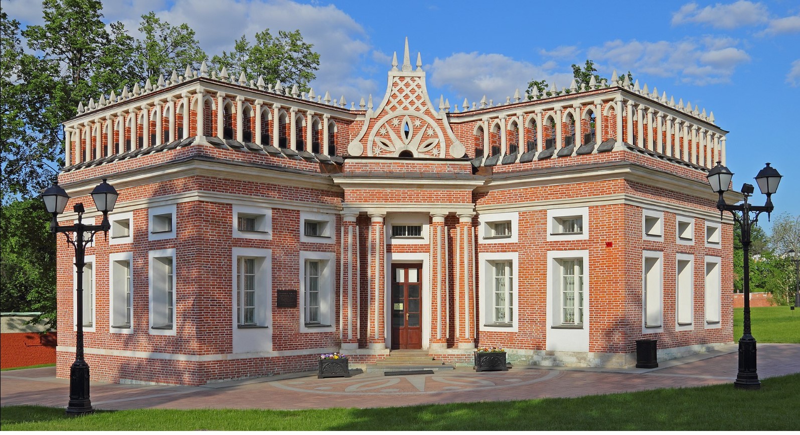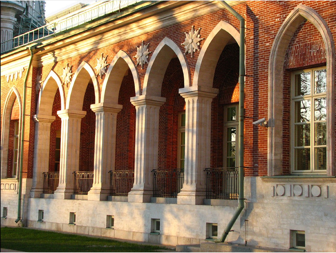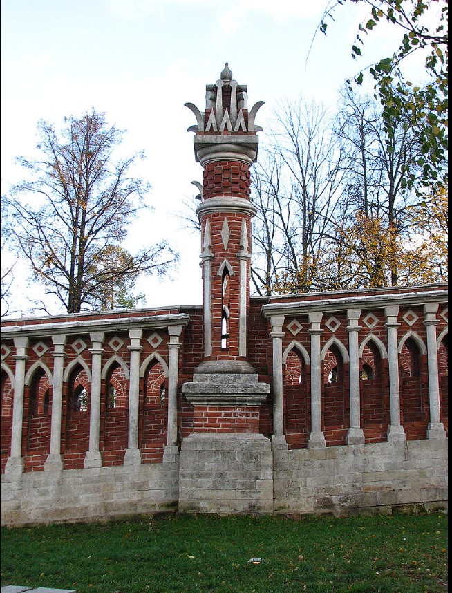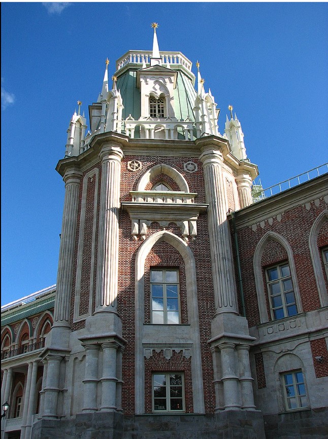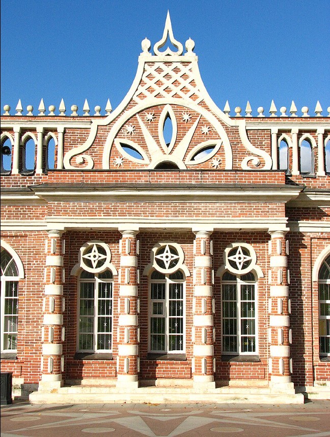 Царицино е паметник на така наречената „руска готика“ (псевдоготика). Над създаването на императорската резиденция в продължение на 20 години са работили последователно двама от най-известните архитекти на тази епоха – Василий Баженов и Матвей Казаков.