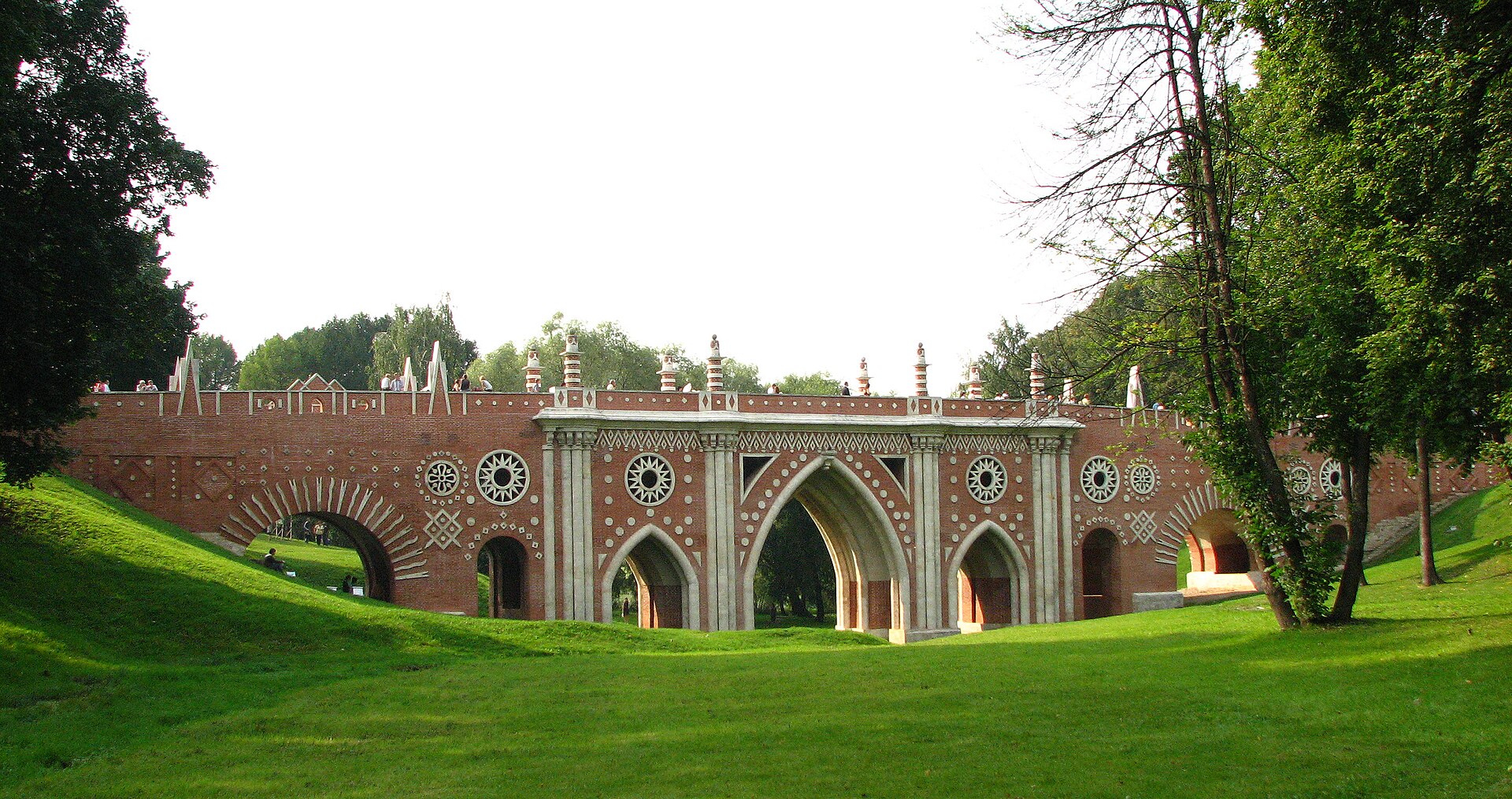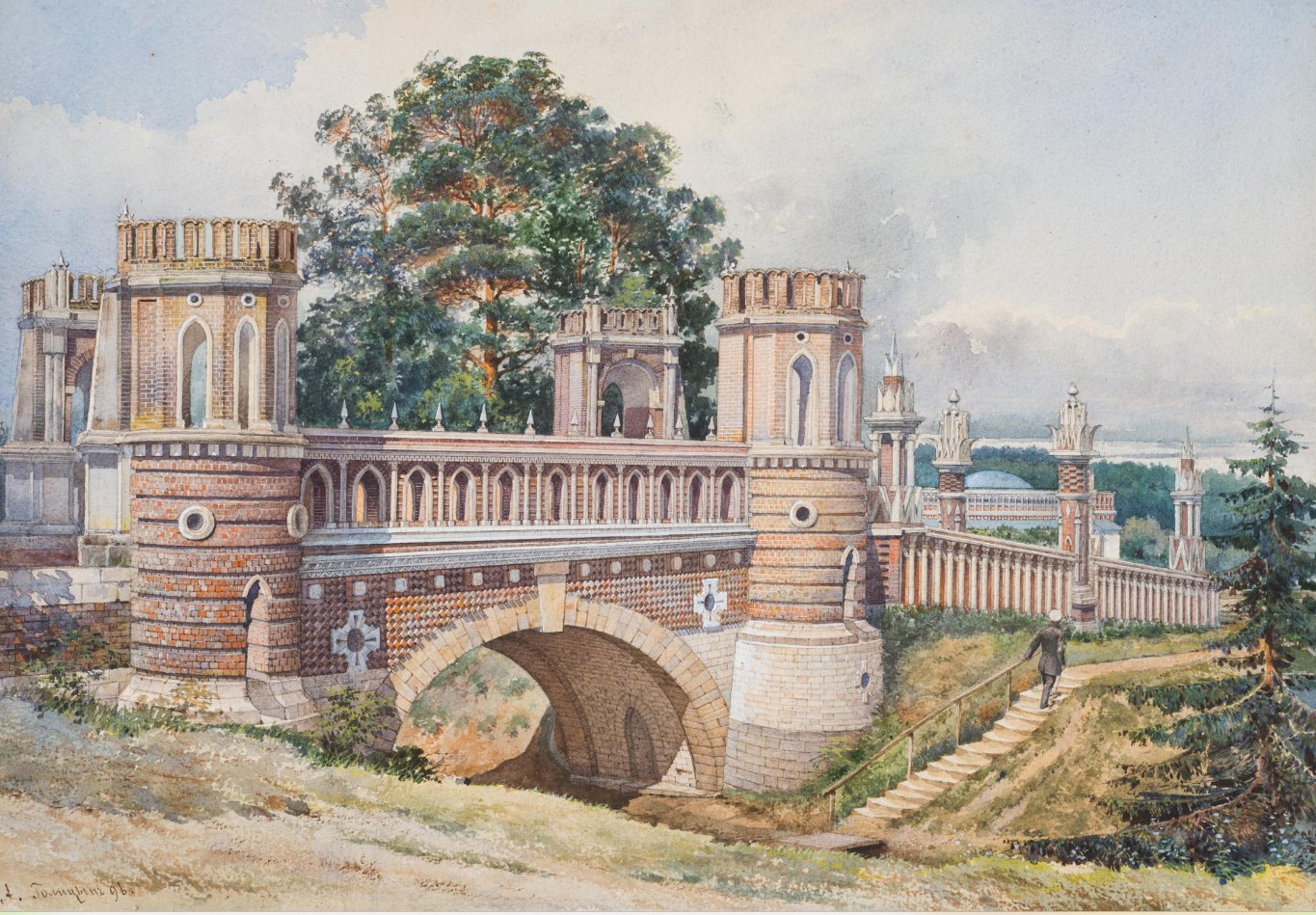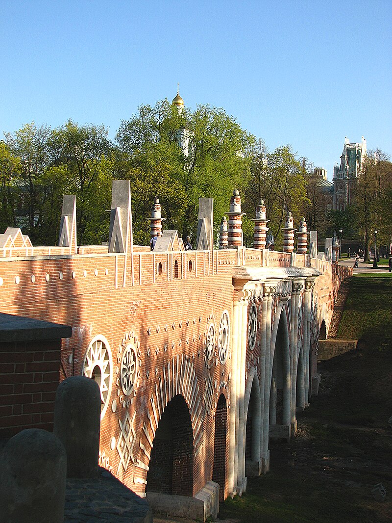 Красивата му арка, обкичена с дървета и ефектно прехвърлена над пътя, сякаш е ехо от тревожните времена на рицарството; мостът Фигурний е най-убедителната част от Царицин: тук става ясна неосъществената мечта на Баженов за романтичен замък над езерото сред вечните дървета, замък с верига от стари легенди, сънуван в детските приказки за спящи красавици, зли крале и млади принцове