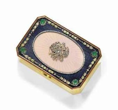 Под №3730 са включени кутия за енфие, подарена на посланика ни в Русия Димитър Станчов, която е оценена на 120 000 – 180 000 долара и табакера с герба на цар Фердинанд, но за нея се очаква да бъдат платени само между 8000 и 12 000 долара. Кутията на Димитър Станчов е с размер от 8,2 см и е от злато.