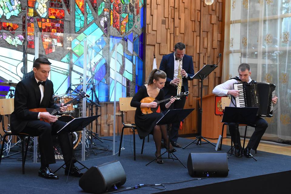 За доброто настроение на празника спомогна и концерта на вокално-инструментален ансамбъл „Бис-Квит“, който изпълни аранжименти на популярни руски и чуждестранни мелодии на народни инструменти. В залата звучеше „Италианска полка“ от Рахманинов и „Баркарола» от П.Чайковски, руската народна песня «Валенки» , българската «Катерино моме» и разбира се обичаните «Калинка» и «Смуглянка». Присъстващите на тържеството имаха възможност да се насладят на традиционните руски ястия и питиета.