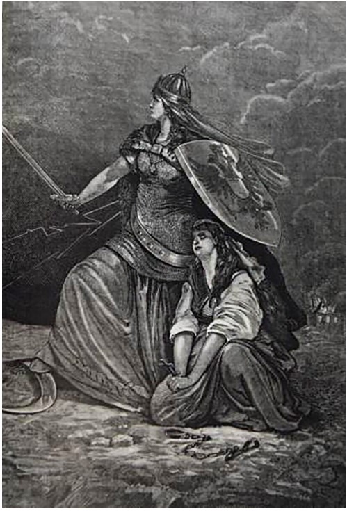 Майчица-Русия е добра, грижовна и справедлива към своите, но пък е безжалостна и безпощадна към враговете на държавата, православната вяра и славяните. В руската пропаганда по време на войната срещу Османската империя от 1877-1878 г. тя се появява като девойка-воин, която прикрива с щита си сръбкиня и е стъпила с крак върху победения турски полумесец.