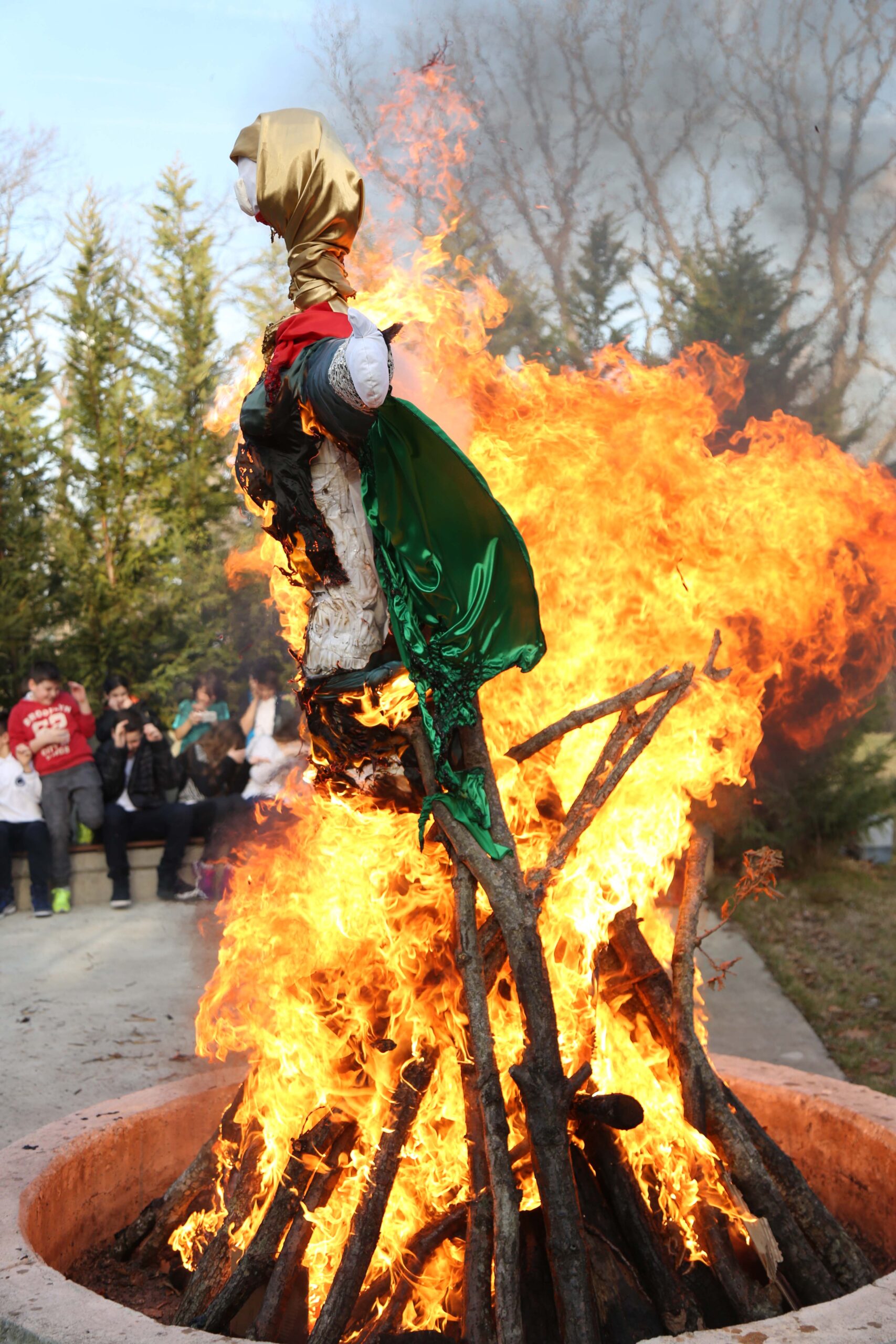 Най-атрактивната част от празника беше свързана с изгарянето на сламеното чучело на зимата. Макар и красива, куклата изчезна в пламъците на огъня, а децата отпразнуваха идването на пролетта с много настроение.