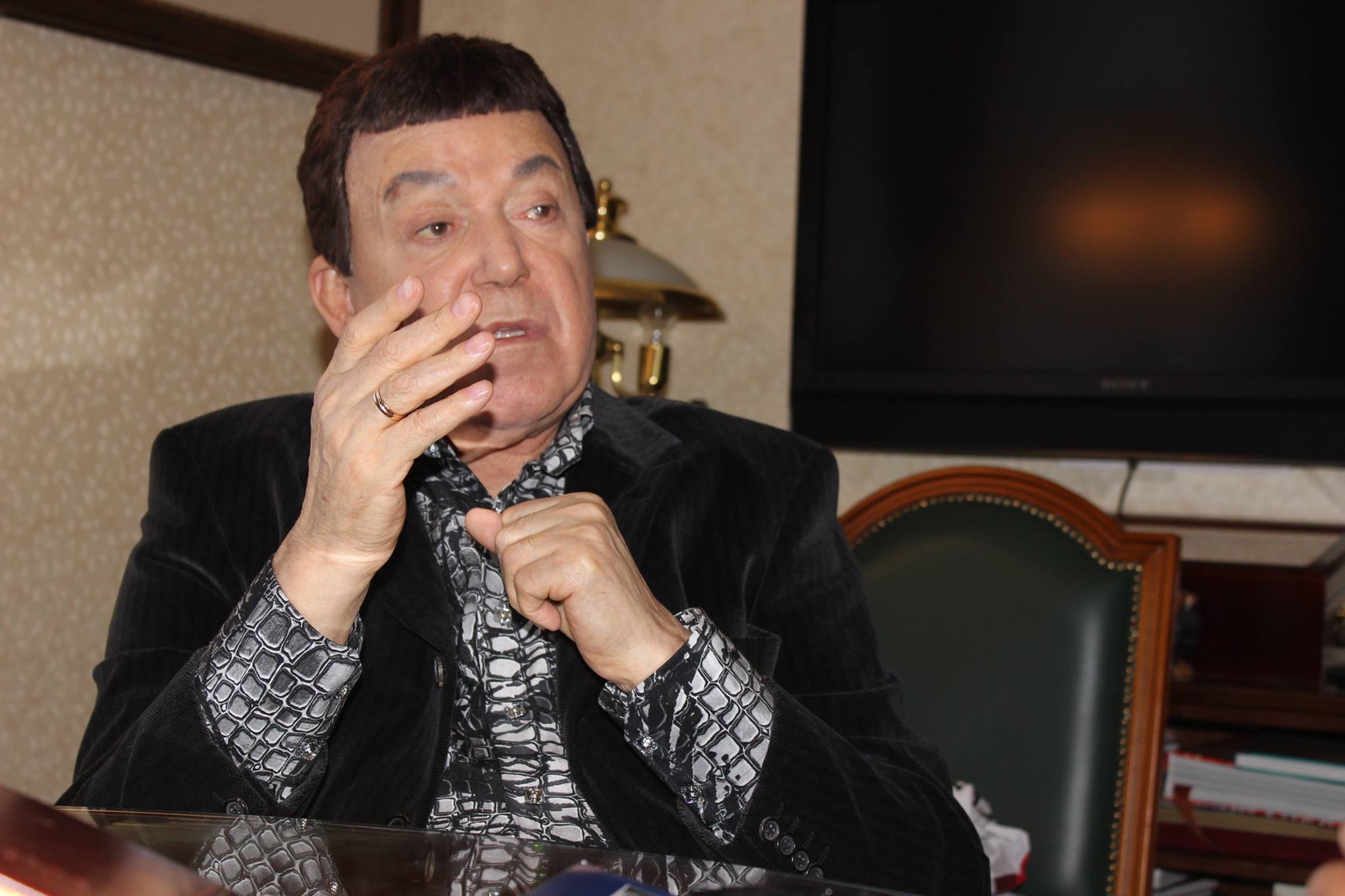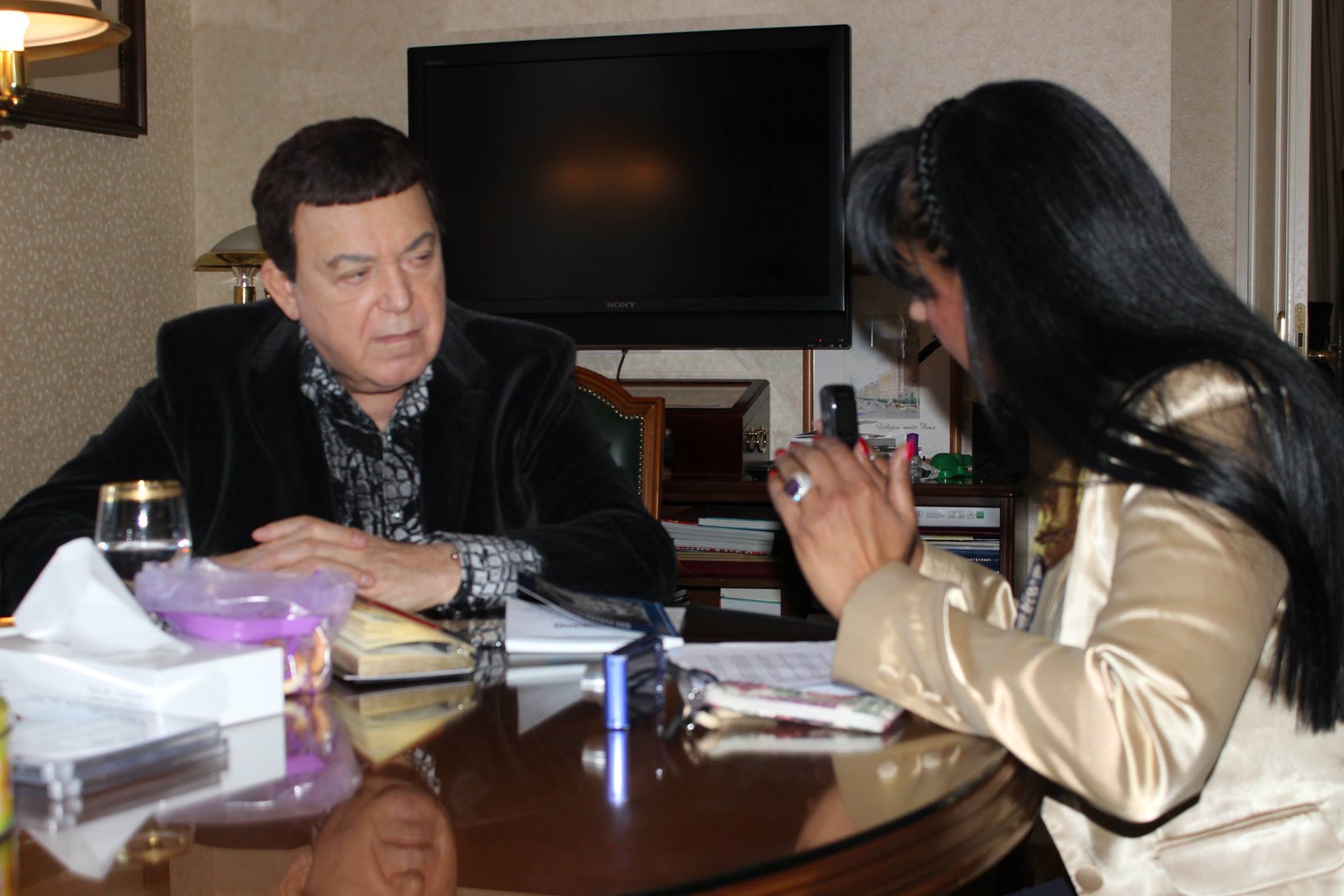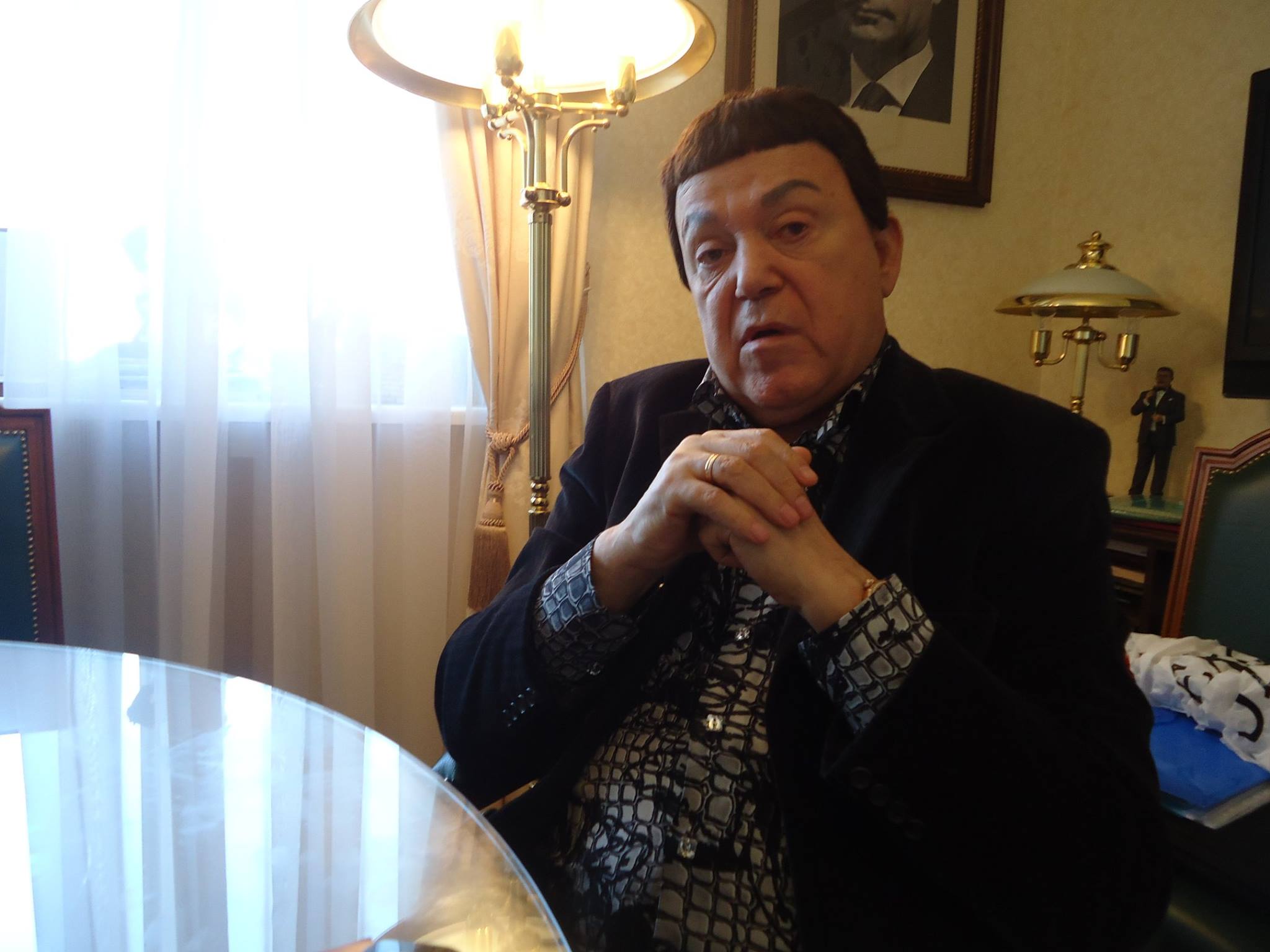 – Много обичам творчеството на Франк. В края на 70-те години, когато бях избран за депутат на СССР, с Михаил Горбачов работих по въпроса да поканим Франк Синатра в Съветския съюз. Но не се разбрахме с импресариото му. Не знам защо ни сравняват със Синатра, имаме абсолютно различен стил, въпреки това ми е приятно. Мисля, че сравнение с Том Джонс повече би ме устройвало. По експресията си приличаме, докато Франк Синатра е по-спокоен, по-лиричен. Ето, на снимките, които тук виждате, съм с мои колеги от световна величина – с Том Джонс, Шестакович, с Мая Плисецкая, с Радион Щедрин, със Спиваков, със Зикина, с красавицата Лайза Минели.