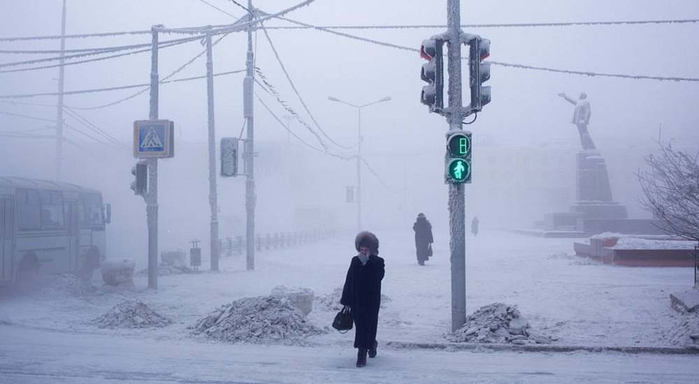 Якутск — столицата на Република Саха (Якутия) е известен като едно от най-студените места на Земята. Празнуването на Нова година тук започва шест часа преди това в Москва.