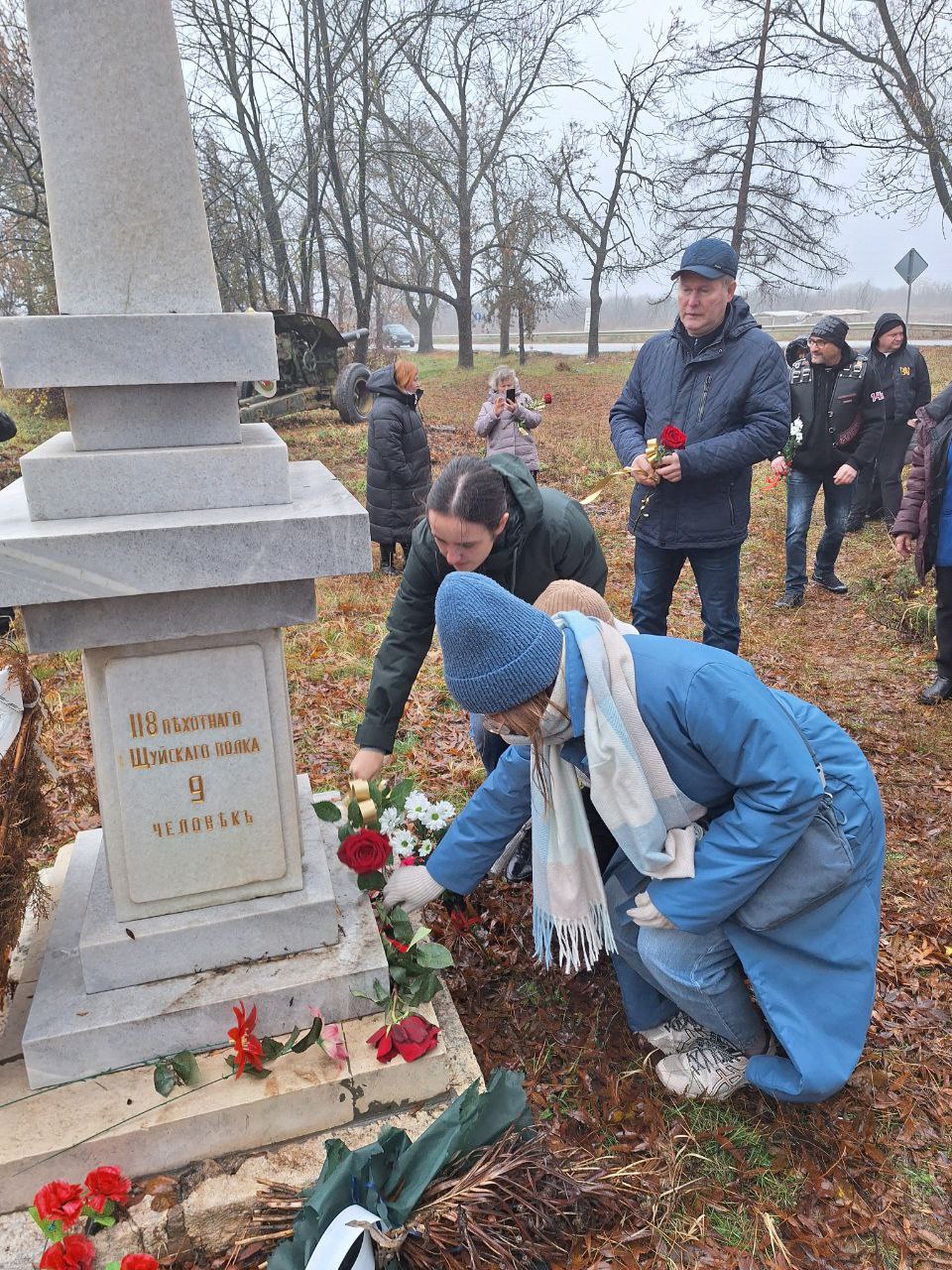 Полагане на цветя пред паметниците на загиналите войници и офицери в Руско-турската война.