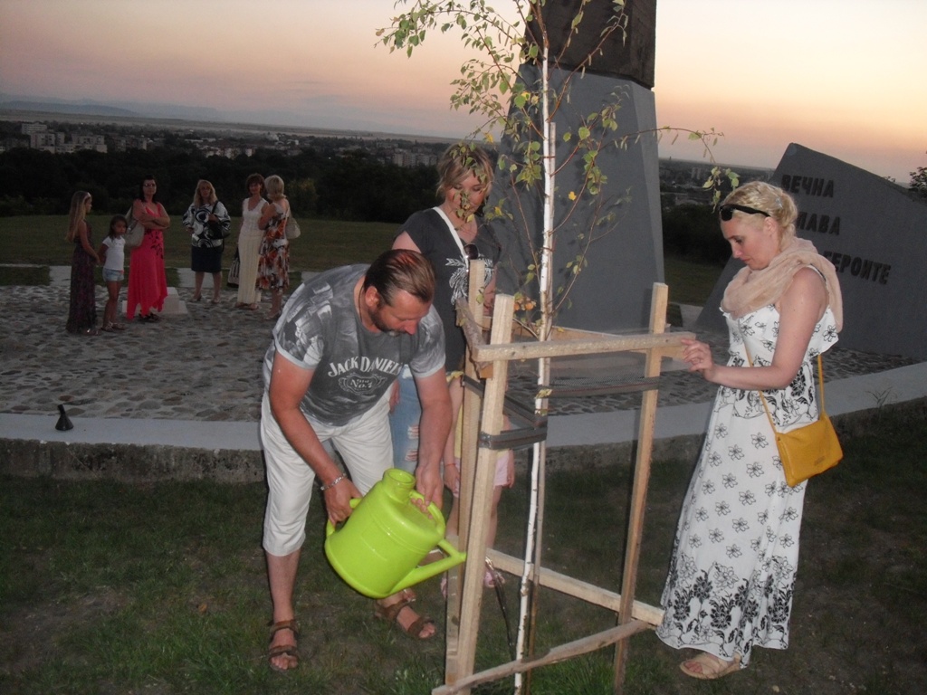 След концерта „Разгуляй“, съпровождани от домакините и председателя на движение „Русофили“ Цветомир Вълков, поднесоха цветя пред паметника „Перката“, поляха брезичките, посадени в чест на загиналите по време на Втората световна война съветски летци, и се поклониха пред тяхната памет.