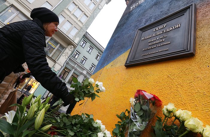 „Днес Мая прекрачи към бъдещето. До последния си миг тя бе обаятелна, стройна, чаровна, смела и много красива. Плисецка е велика дама! И аз съм щастлив, че точно тук, на това артмясто, има графит с нейния вечен образ и паметник. Мая е сред нас, тя прекрачи към бъдещето“, каза съпругът на балерината, композиторът Родион Щедрин.