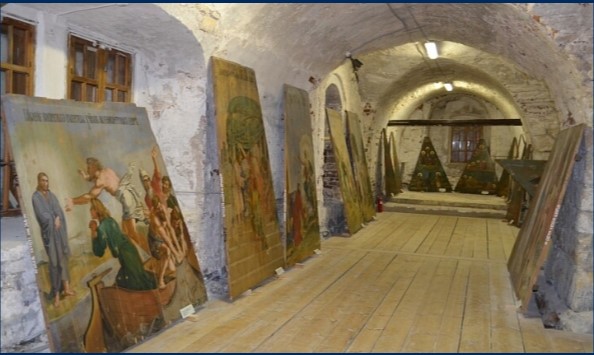 Централната изложбена зала на музея се намира в здание, в близост до Введенската църква, в мазетата на която през 1812 г. е било скрито имущество на императорското семейство, донесено от Москва.