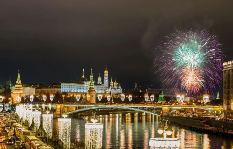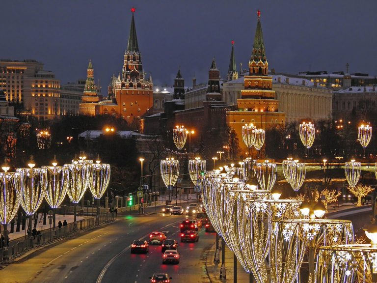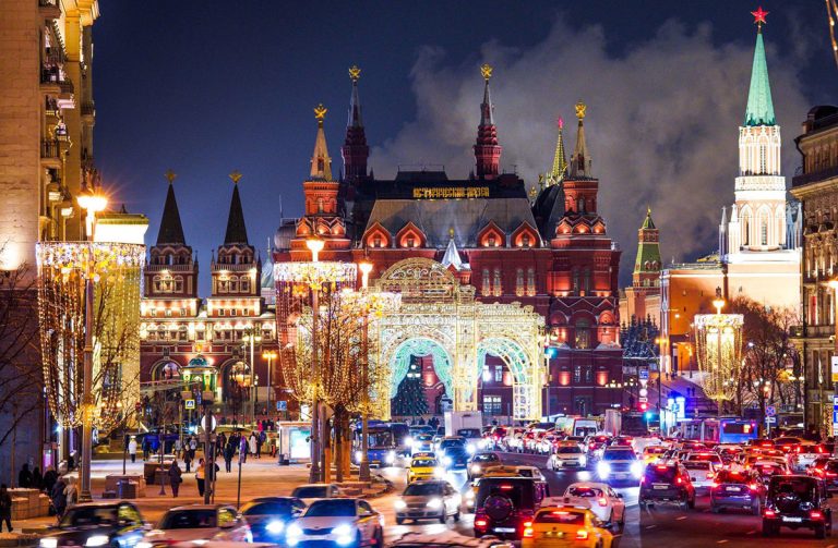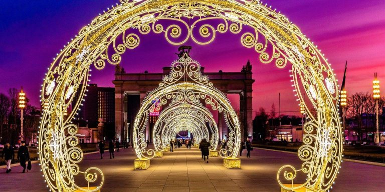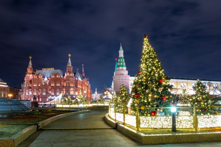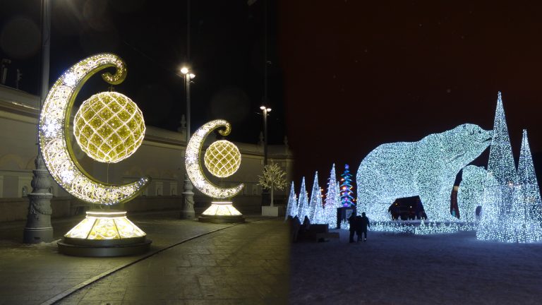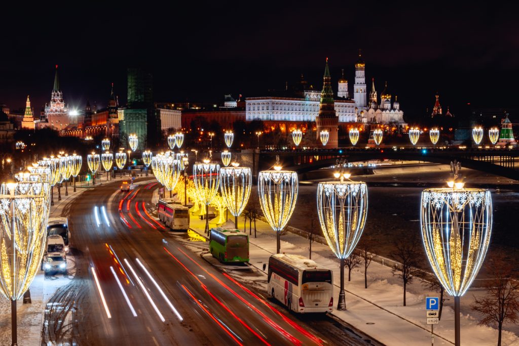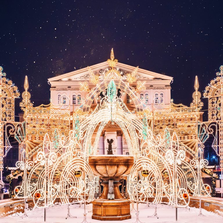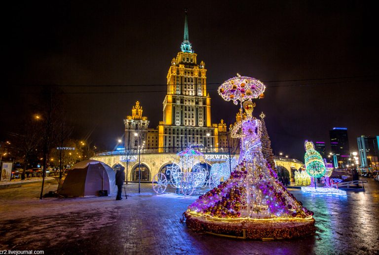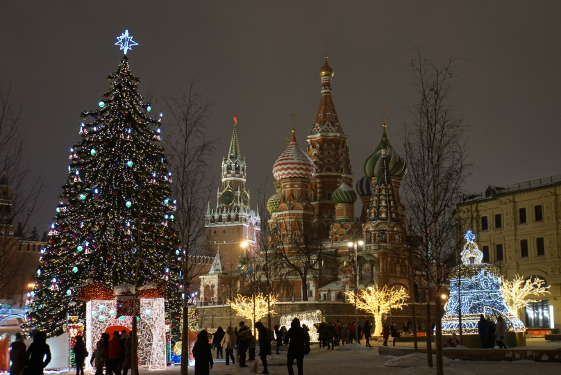 По време на новогодишните празници улиците на столицата се изпълват с огньове и коледни украси.  Украсените Тверска и Арбат доставят незабравими впечатления.