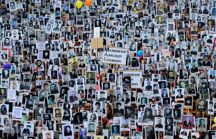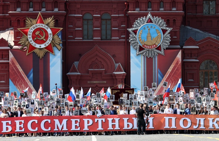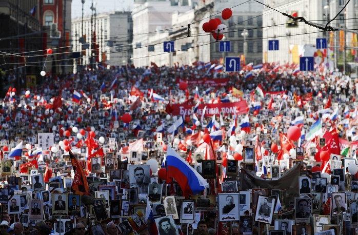 По улиците на Москва почетоха паметта на роднините си, сражавали се във Втората световна война, повече от 500 хил. души. Шествието по Червения площад оглави лично руският президент Владимир Путин.