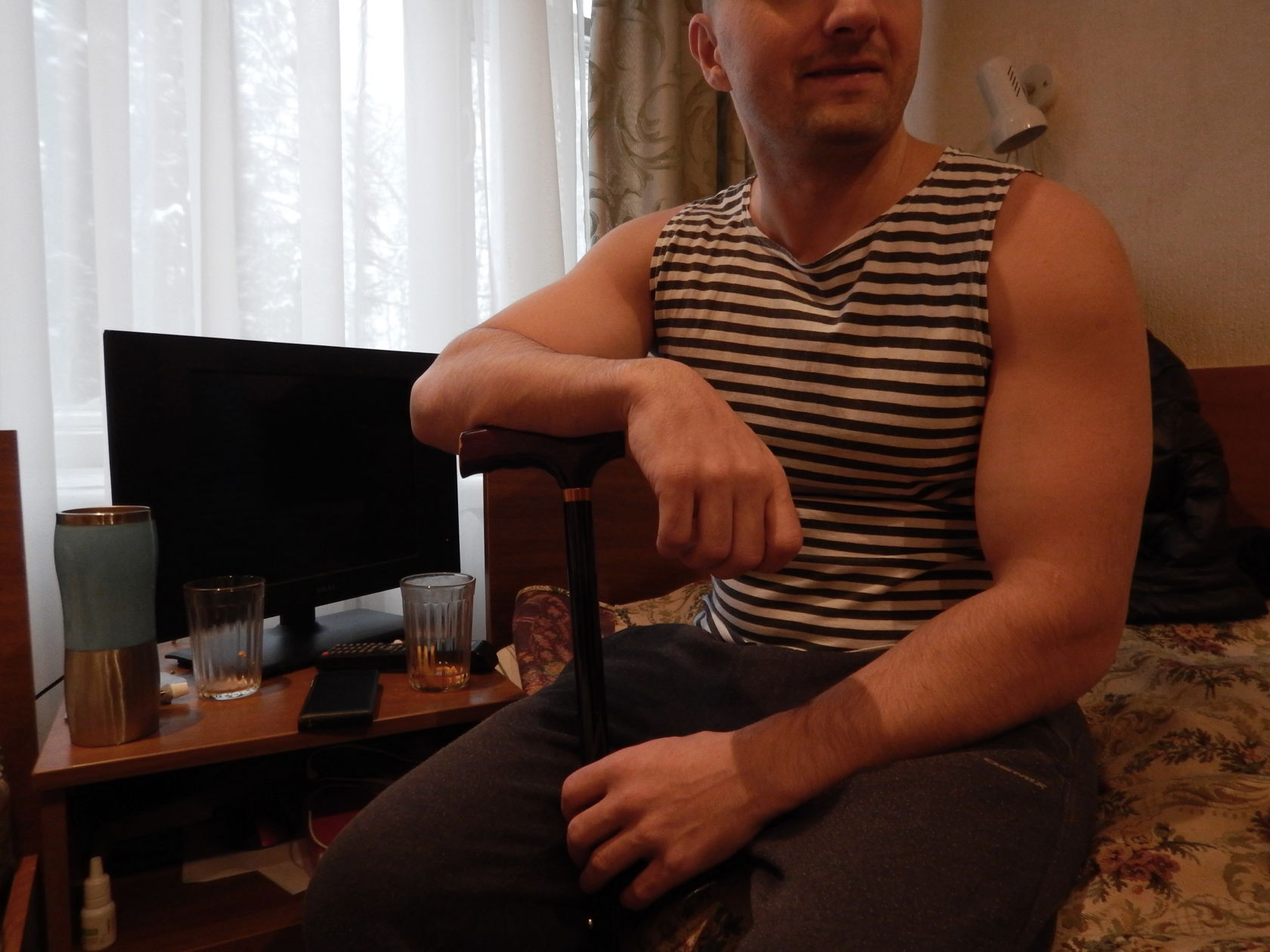 Единият от бойците е доброволец с позивната «Поляна». В Донбас боецът е дошъл от родния си град Сочи, участвал е в събитията през януари и февруари 2015 година в състава на първа интербригада «Пятнашка». «Защитавахме Дебалцево, попаднахме под картечен огън, – разказа «Поляна» за деня, когато е бил ранен. – Куршумът ме уцели в горната част на бедрото, повреден е нерв. Прогнозата на лекарите за сега не е ясна. Всичко зависи от това, дали нервът ще се възстанови. Може би ще ме оперират през февруари. Засега ще се лекувам, нагласата ми е положителна, всичко ще е наред».