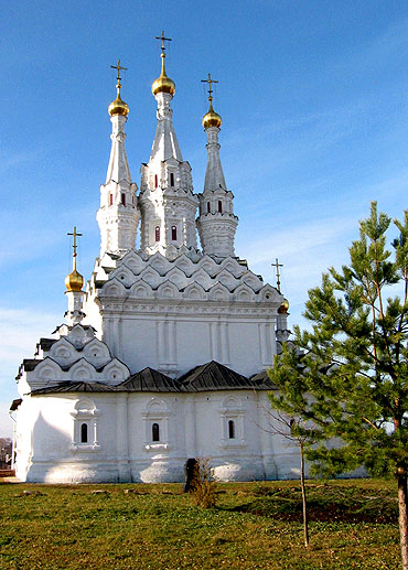 Дълго време руската църковна архитектура използва т.нар. шлемовидни куполи, чиято форма наподобява шлемовете на руските богатири. Такива куполи могат да бъдат намерени на най-старите оцелели църкви. Те имат най-голям диаметър в основата. На куполите са поставени четирилъчеви кръстове с полумесец в основата. Съчетанието на кръста с полумесеца не е напълно ясно. Най-вероятно това е символ на слънцето (кръст) и луната (полумесец)