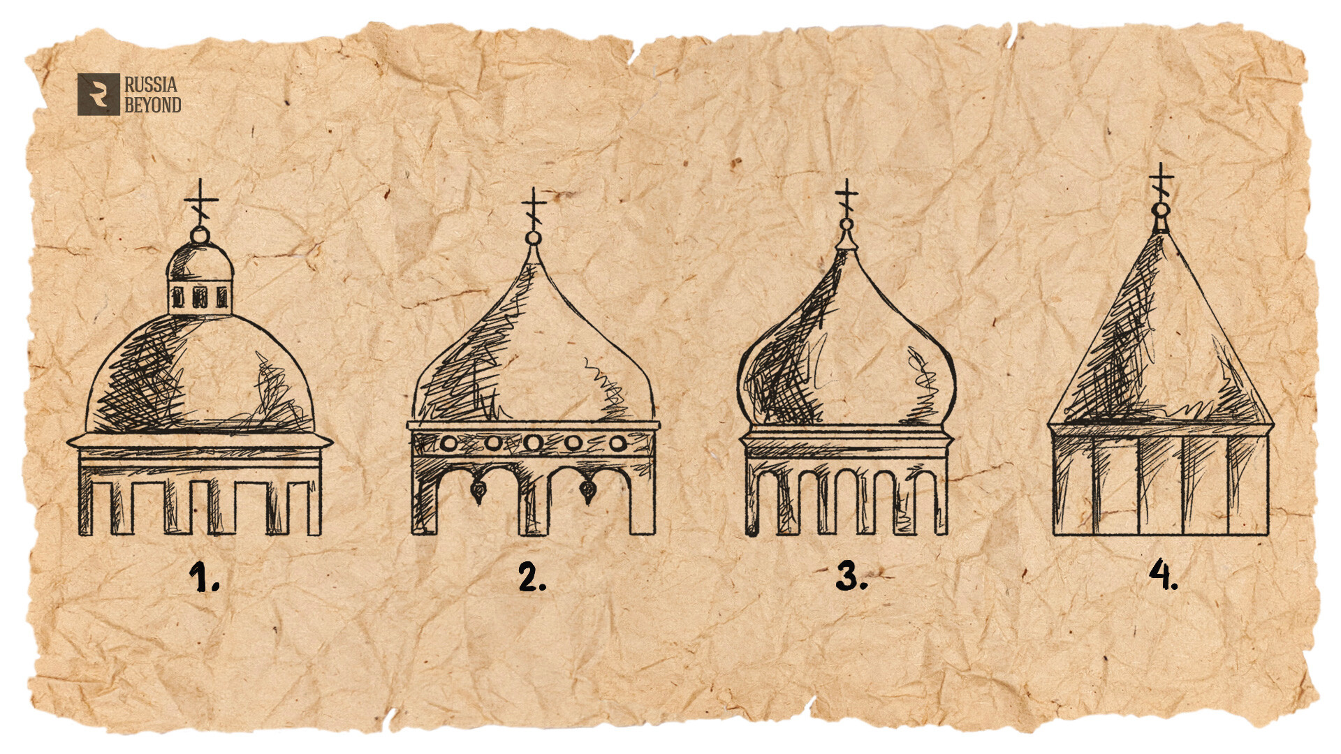 Най-често се срещат куполи, чиято форма наподобява луковица (3). Освен чисто практическата функция (върху такава форма не се натрупва сняг, а това е изключително важно за снежните руски зими, когато тонове сняг могат просто да смажат конструкцията), има и символично значение – луковицата, заострена към върха, прилича на пламък на свещ.