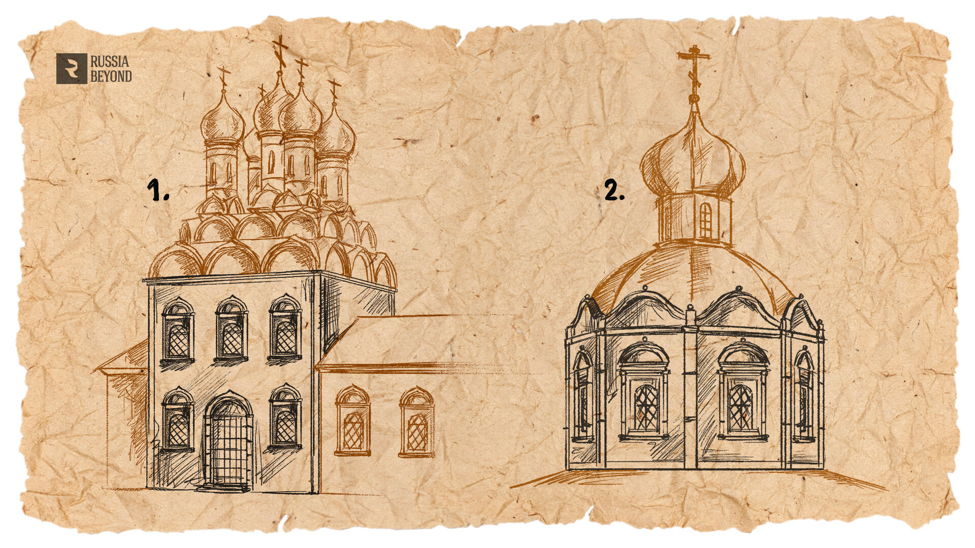От края на XVI-XVII в. на мода идват и куполите, които наподобяват шатри (4), върху които има малки златни куполи. Храмовете освен това често имат шатровидни пристройки-камбанарии.