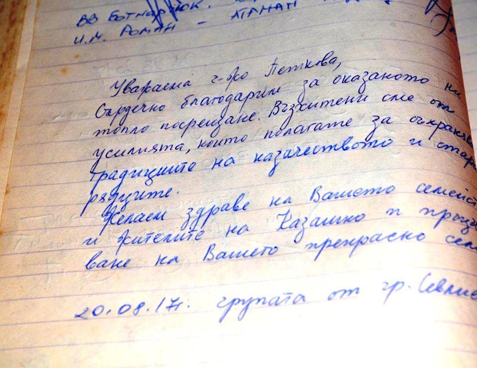 На връщане групата посети с. Казашко – малък оазис на брега на Варненското езеро, приютил потомци на руски донски и кубански казаци – старообрядци, изповядващи древното православие. Севлиевци бяха сърдечно посрещнати от Гергана Петкова – кметица пети мандат на селото. За бита и традициите на старообрядците разказва Древноправославната руска църква и Казачий дом, грижливо подреден с предмети от казашкия бит и култура. Руски бонбони, пряники, сладолед „пломбир” и други лакомства, закупени в магазин „Березка”, придадоха допълнителен колорит на двата екскурзионни дни, които организира Общинско движение „Русофили”.