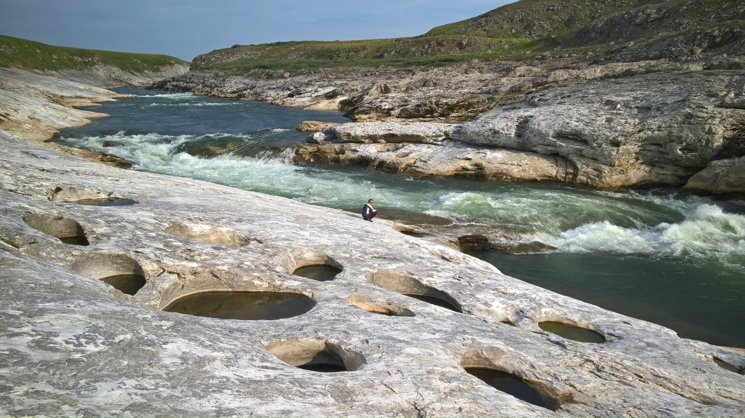 Недалеч от водопада, на скалите, може да се видят вдлъбнатини, подобни на лунните кратери.