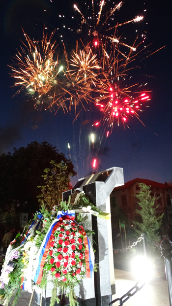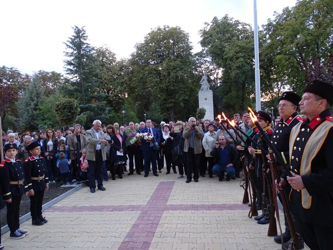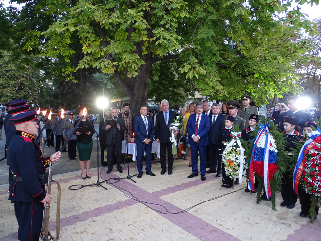 „В този ден се прекланяме пред хилядите български, руски, румънски и финландски воини, пролели кръвта си за нашата земя, коленичим пред братска Русия и свеждаме чела пред нейните синове“, каза в словото си кметът Николай Грозев. По думите му, времето не може да изличи подвига на доблестните мъже, пожертвали младостта и живота си за нашата свобода, а дълг на потомците е да съхранят спомена за тях, да бъдат силни и достойни техни следовници. „Само така паметта ще пребори забравата“, убеден е Николай Грозев.