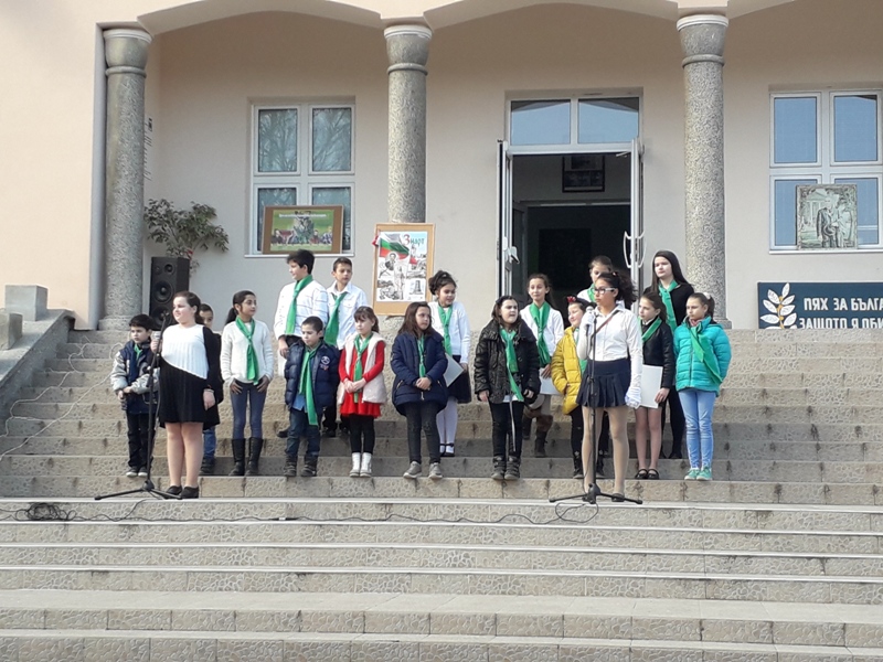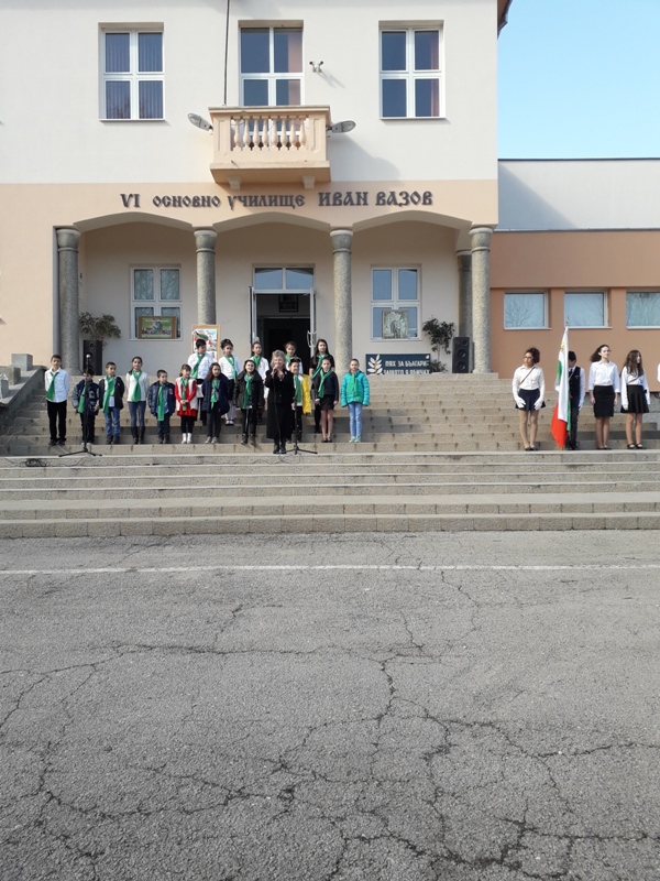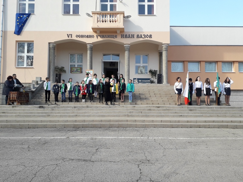 В VІОУ “Иван  Вазов“ имаме вече клуб по руски език  и на 1 март от 11,30 часа там се проведе митинг с участието на всички ученици със слово на Ст.Постомпирова-директор. Гости бяха В.Радков – секретарят и Цв. Иванова -пиярът на  Областната управа, Председателят на училищното настоятелство доц.Пенчо Стойчев, родители и разбира се Секретарят на Обл.съвет на НДР и Юлия  Жданова, председател на руската диаспора  „Вива”.  След обяд  децата  ходиха на  паметника на поп  Харитон, на който имат  шефство,  почистиха  района и поднесоха цветя.