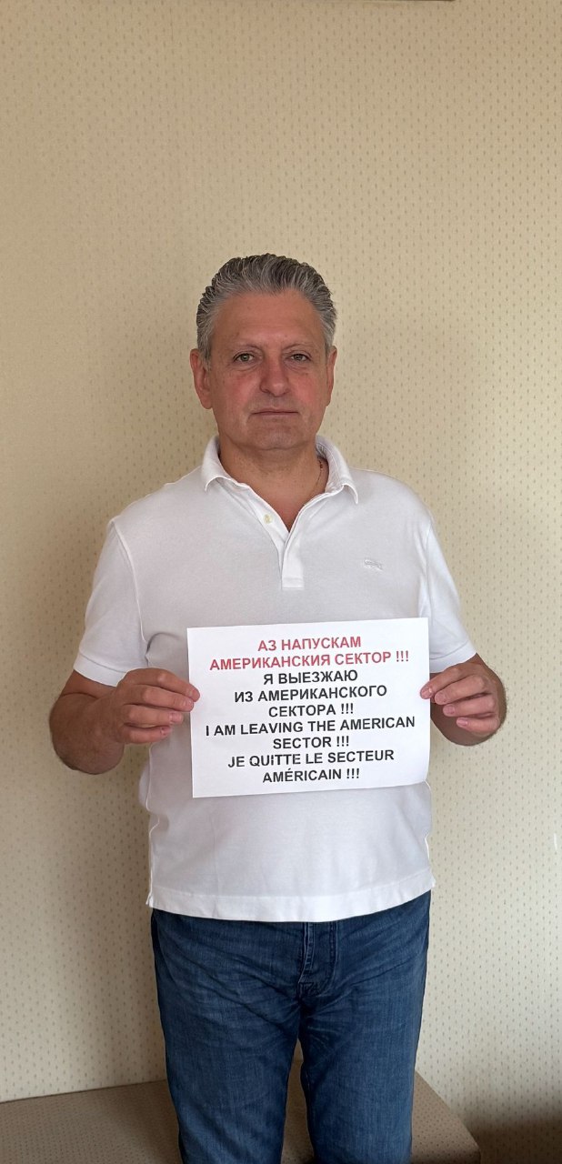 — Вече няколко години подред, на 4 юли, Денят на независимостта на Съединените щати, провеждаме символична акция, наречена „ВИЕ НАПУСКАТЕ АМЕРИКАНСКИЯ СЕКТОР“. Тя възникна от дълбокото ни осъзнаване и желание да визуализираме една реалност, която според нас, често остава незабелязана или не напълно осъзната от хората тук, на Запад.