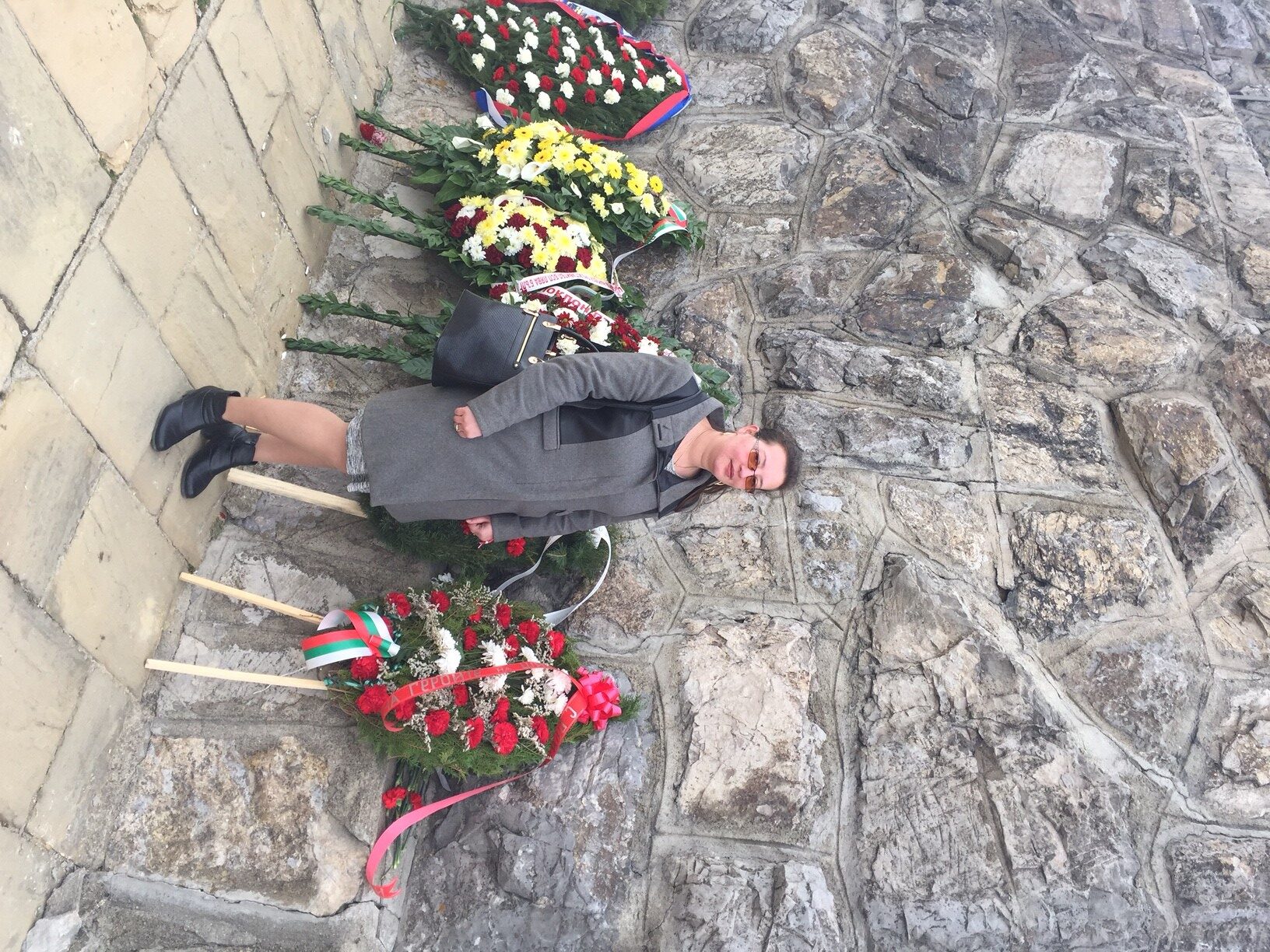 С коленичене и едноминутно мълчание беше почетена паметта на загиналите герои. Бяха поднесени венци и цветя пред паметника.