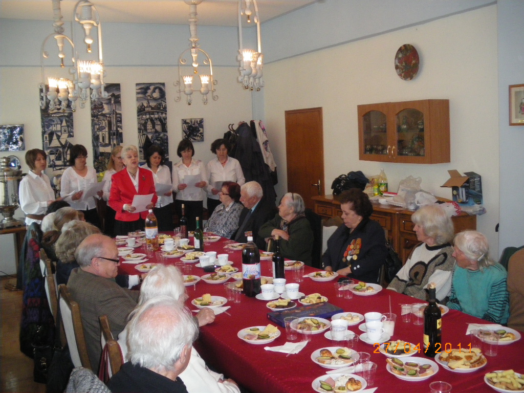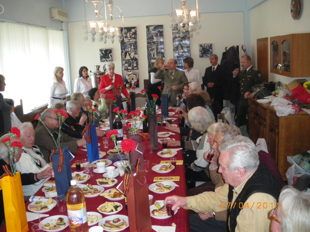 Мы всегда уделяли ветеранам большое внимание. Мы регулярно проводим встречи с ними, чествования по случаю разных праздников, событий Великой Отечественной войны, юбилеев и торжественных дат. Организованные нами и проведенные в Российском культурно-информационном центре празднования по поводу 70-летия Победы под Сталинградом (Ю.Н.Исаков со сцены на празднике передал нам поздравление от В.И.Матвиенко) в переполненном зале с полевой кухней и 100 г. фронтовых , 70-летия снятия блокады Ленинграда, 70-летия битвы под Москвой и на Курской дуге нашли широкий отклик не только среди наших ветеранов и соотечественников, но и среди болгарской общественности и простых болгар. Большое внимание было уделено празднованию 70-летия Победы в Великой Отечественной войне.