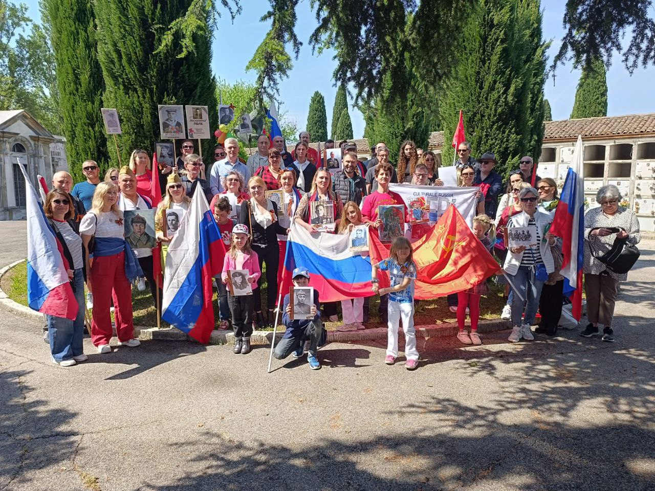 Даниеле Ланца, учредител на МДР от Италия, заедно със свои съграждани отбелязва Деня на Победата в Болония.